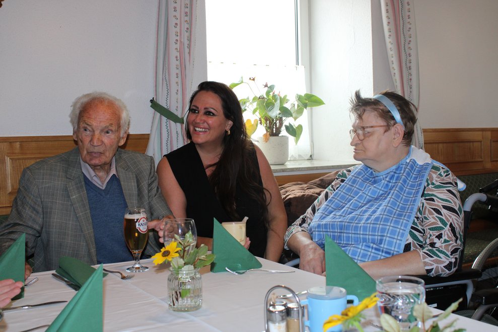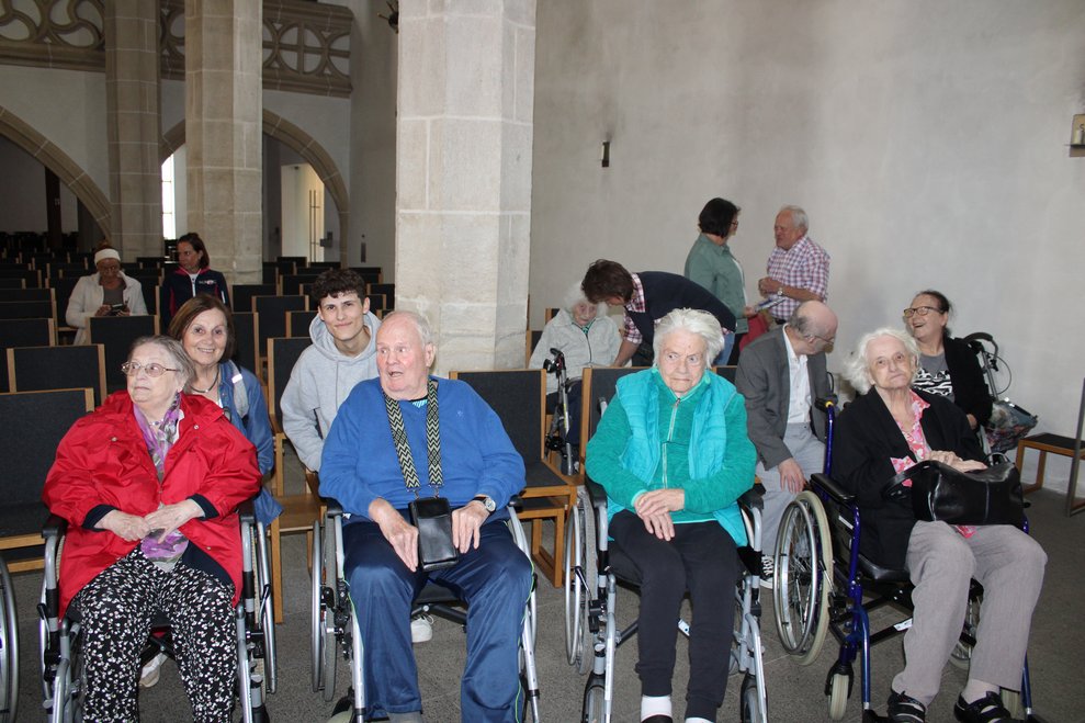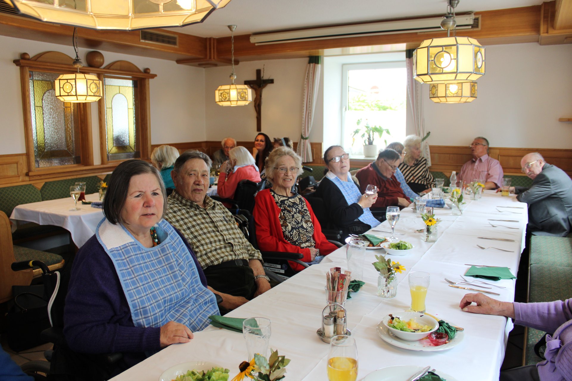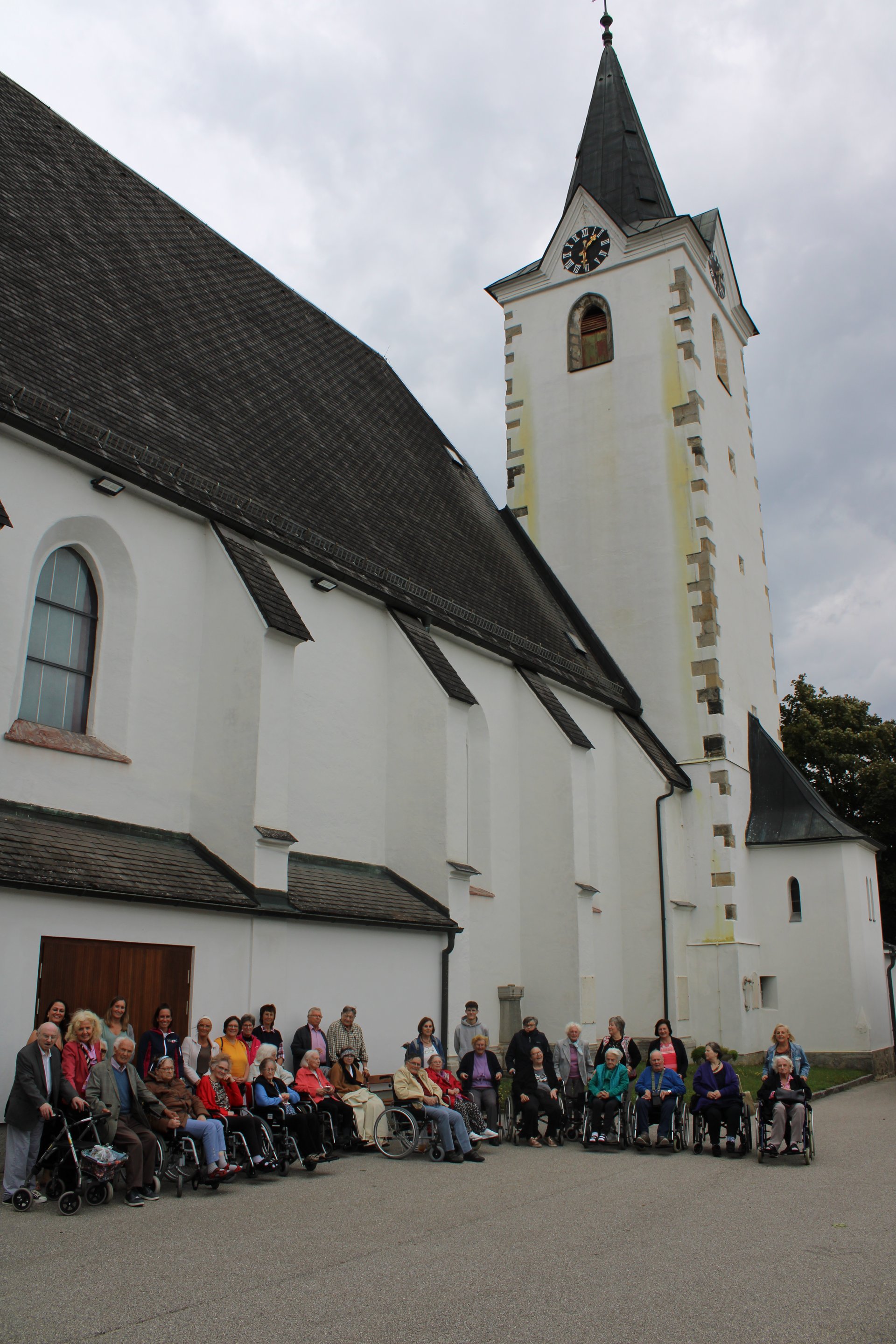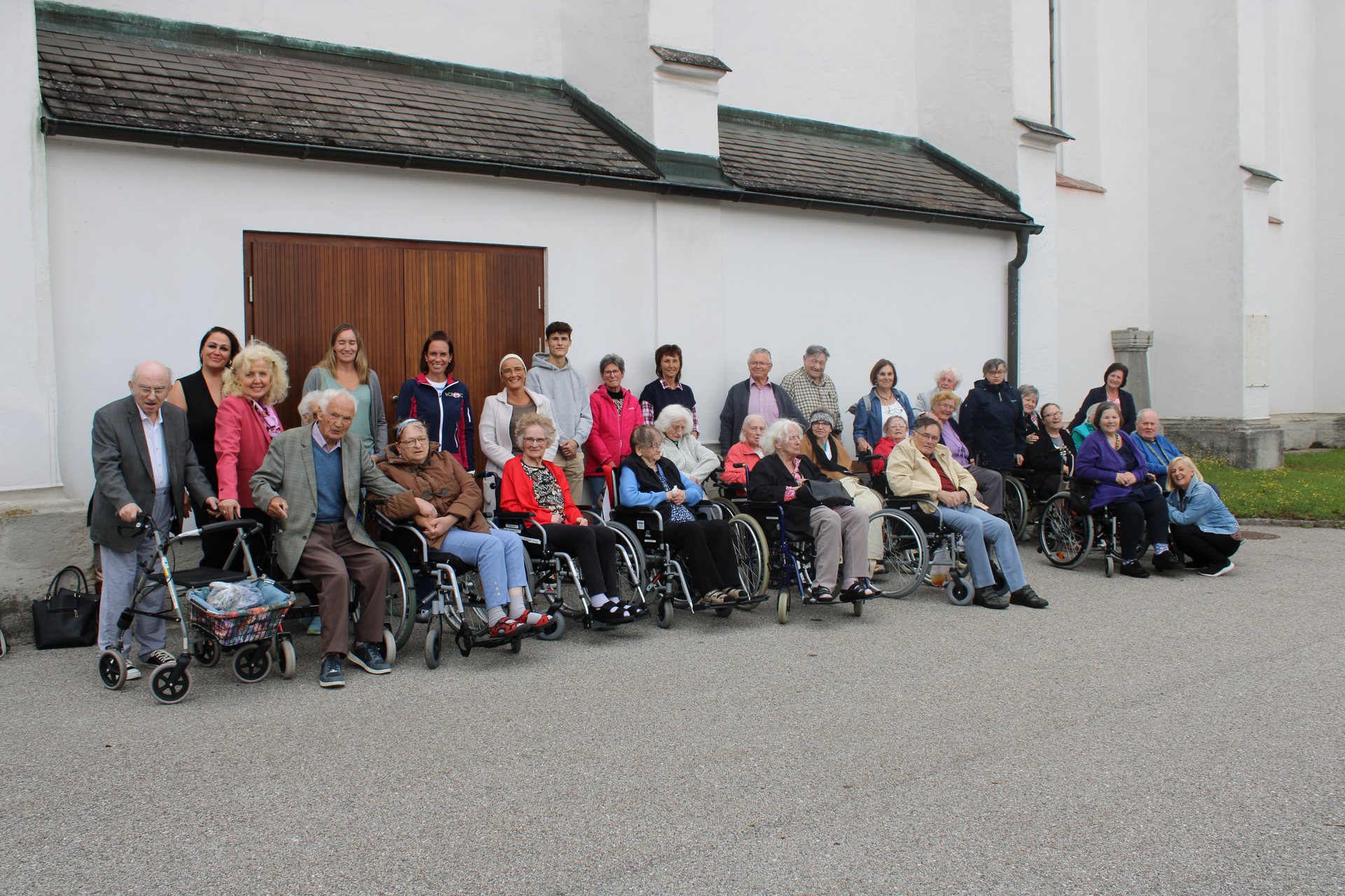 Der diesjährige Ausflug führte unsere Bewohnerinnen und Bewohner, begleitet von haupt- und ehrenamtlichen Mitarbeiterinnen und Mitarbeitern nach Mitterkirchen im Machland. Von Waidhofen/Ybbs führte uns der Weg über Amstetten und Grein, vorbei am Stift Baumgartenberg und dem Keltendorf, an unser Ziel. Erste Anlaufstelle war sogleich das Gasthaus, wo wir gemeinsam Schnitzel mit Pommes Frites genießen konnten. Nach einem kurzen Spaziergang zur Andachtskapelle unter einem Kastanienbaum, versammelten wir uns vor der Pfarrkirche in Mitterkirchen. In der Kirche erwartete uns bereits die hiesige Pastoralassistentin, die gemeinsam mit Ilse Rohrhofer, Pastoralassistentin in Waidhofen und Seelsorgerin unseres Pflege- und Betreuungszentrums einen schönen Gottesdienst hielt.