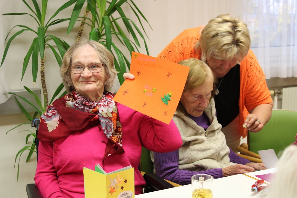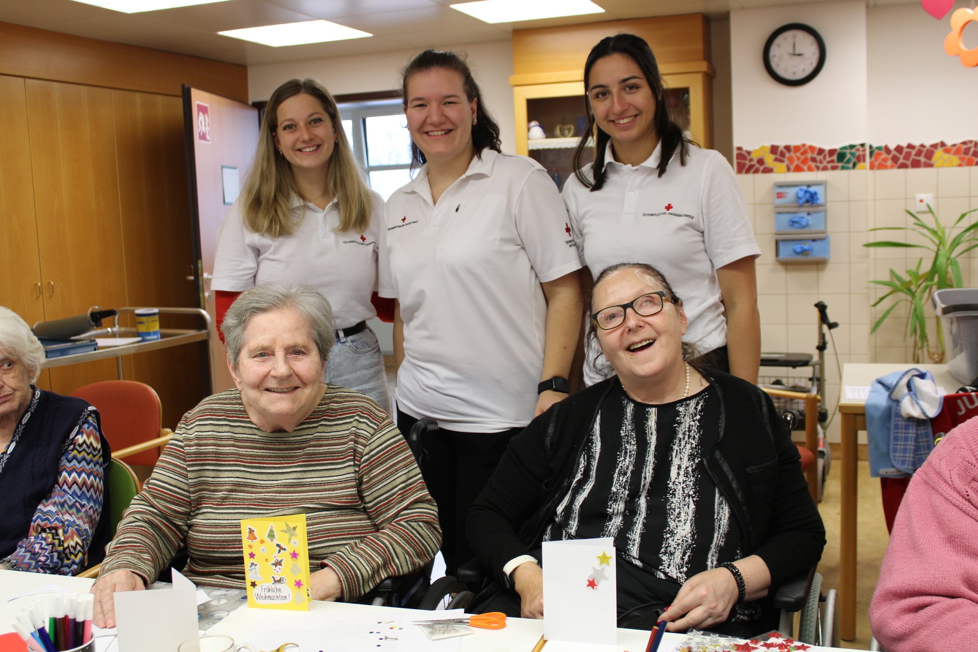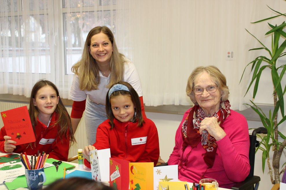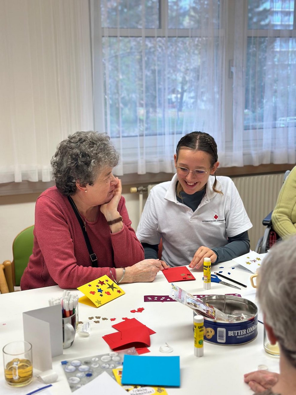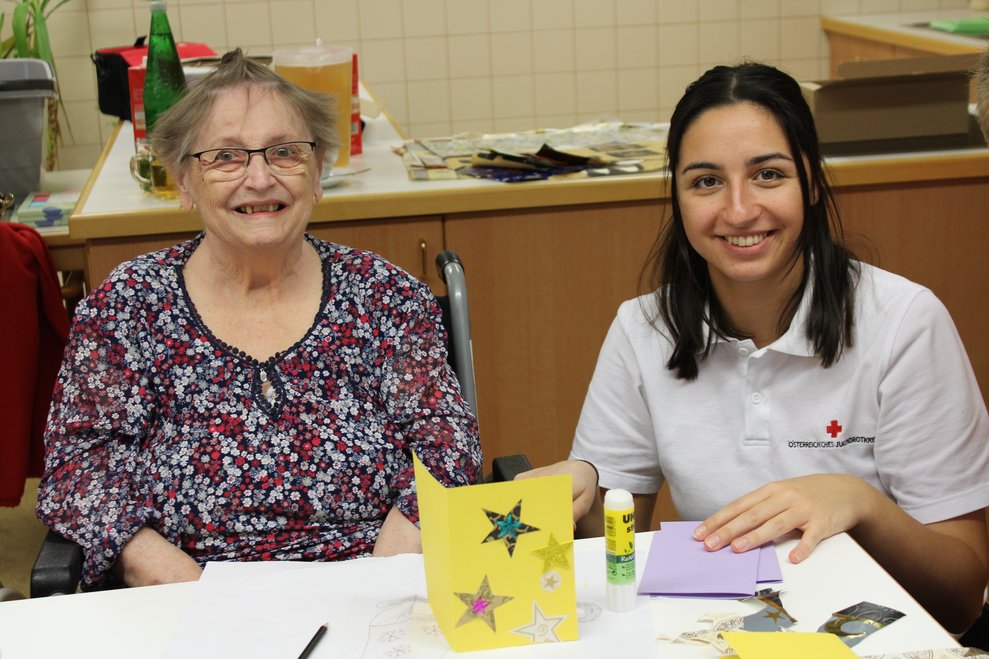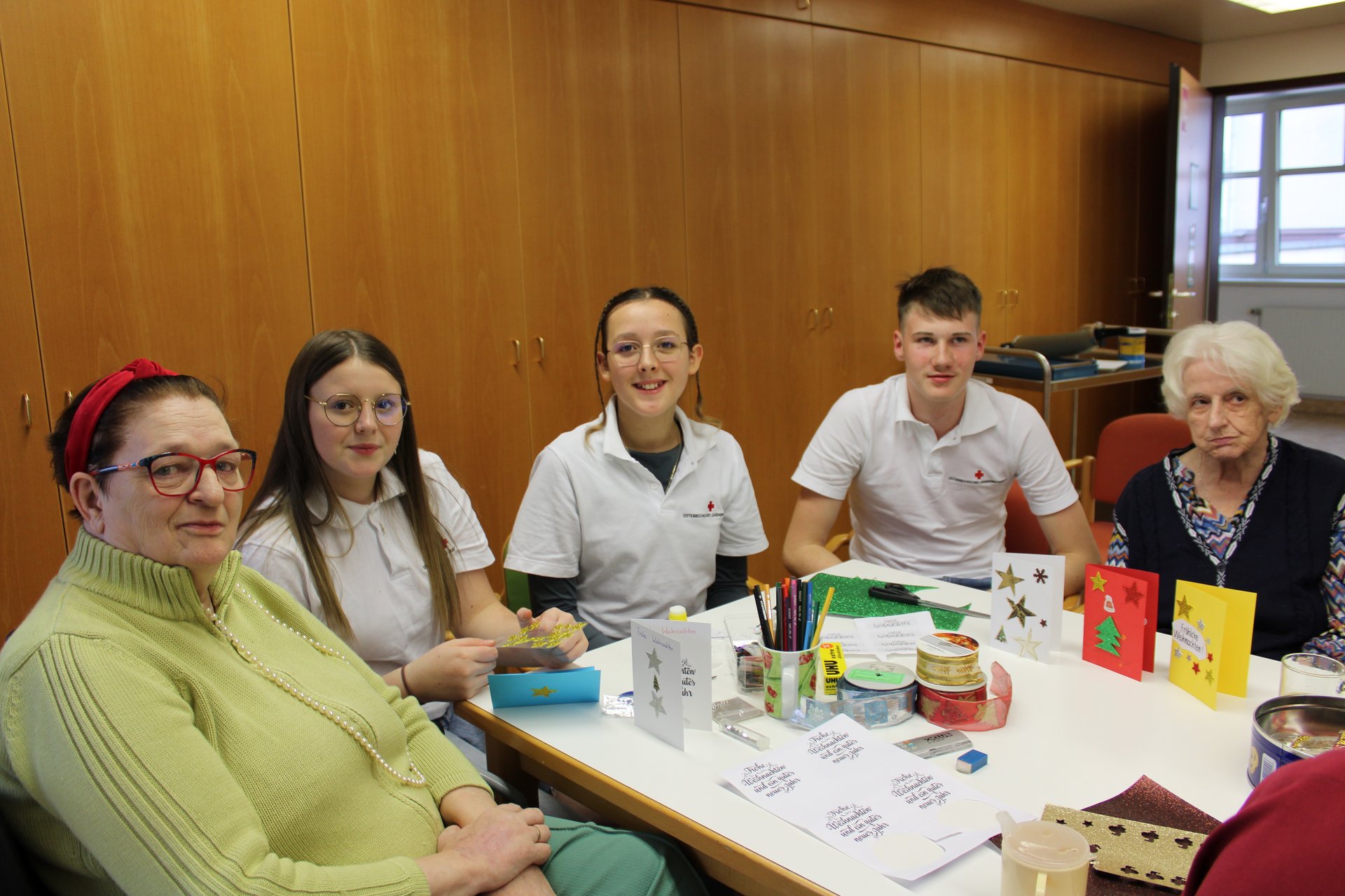 Die Jugendgruppe des Roten Kreuz Waidhofen/Ybbs veranstaltete mit Bewohnerinnen des PBZ Waidhofen/Ybbs einen Bastelnachmittag, bei dem schöne Weihnachtskarten entstanden sind.