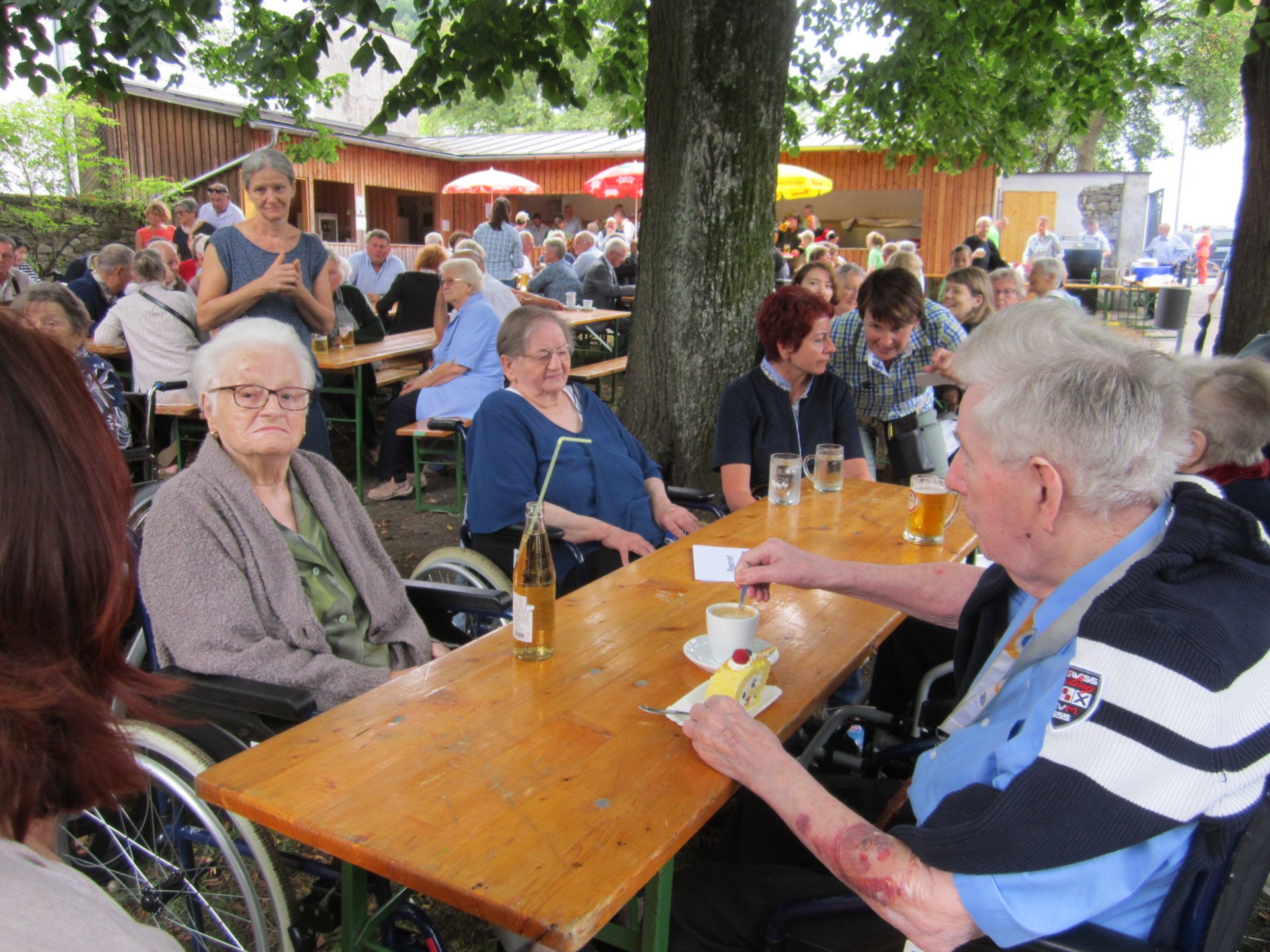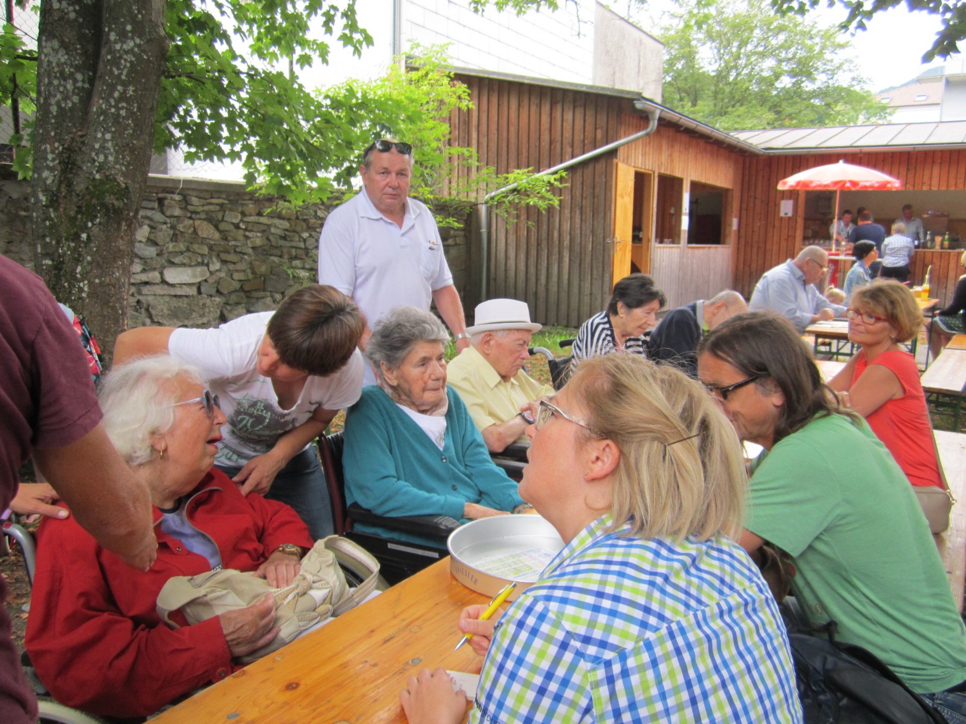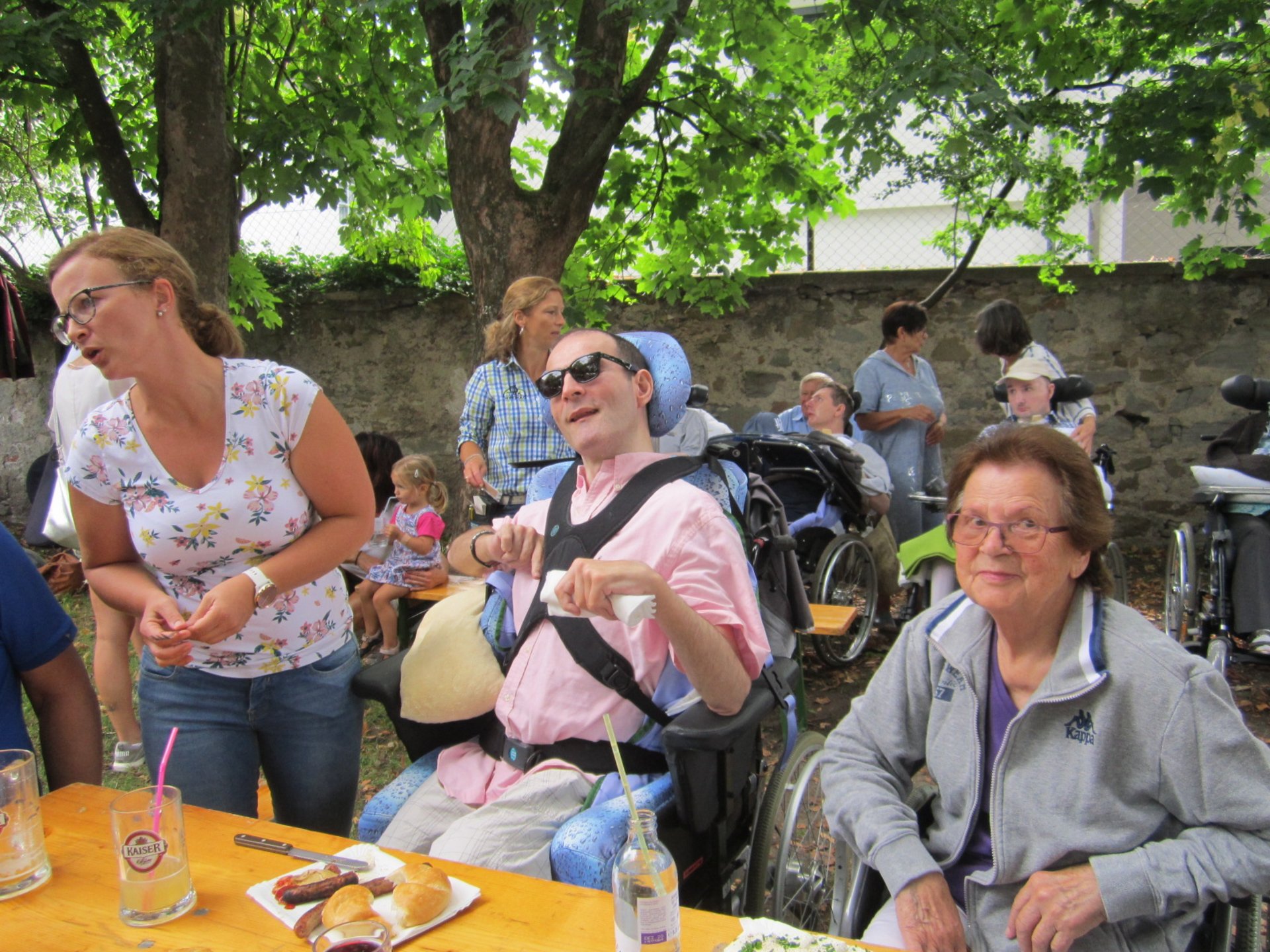 Der traditionelle Frühschoppen der Trachtenmusikkapelle Windhag im Konviktgarten hatte dieses Jahr ganz besondere Zuhörer. Gemeinsam mit ihren Stammgästen kamen Christian und Heidi Schwarz, die Wirtsleute vom Puntiwirt, um 10.00 Uhr in unser Haus und gemeinsam mit unseren Bewohnerinnen ging es in einer Karawane durch die Allee in den Konviktgarten. Unsere Bewohnerinnen wurden nicht nur musikalisch verwöhnt, das Ehepaar Schwarz bewirtete unsere Bewohner mit Grillspezialitäten und Mehlspeisen