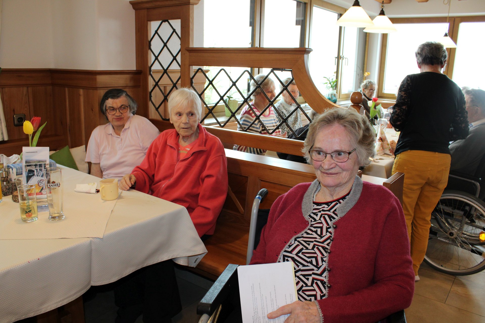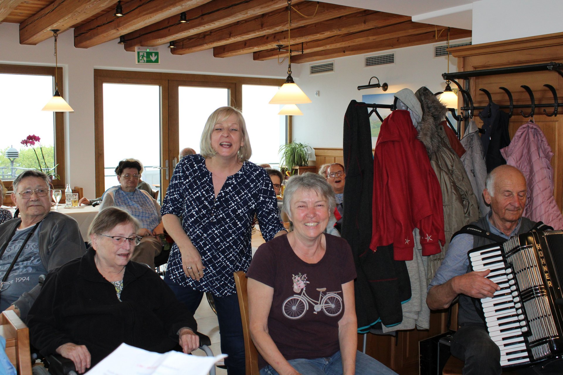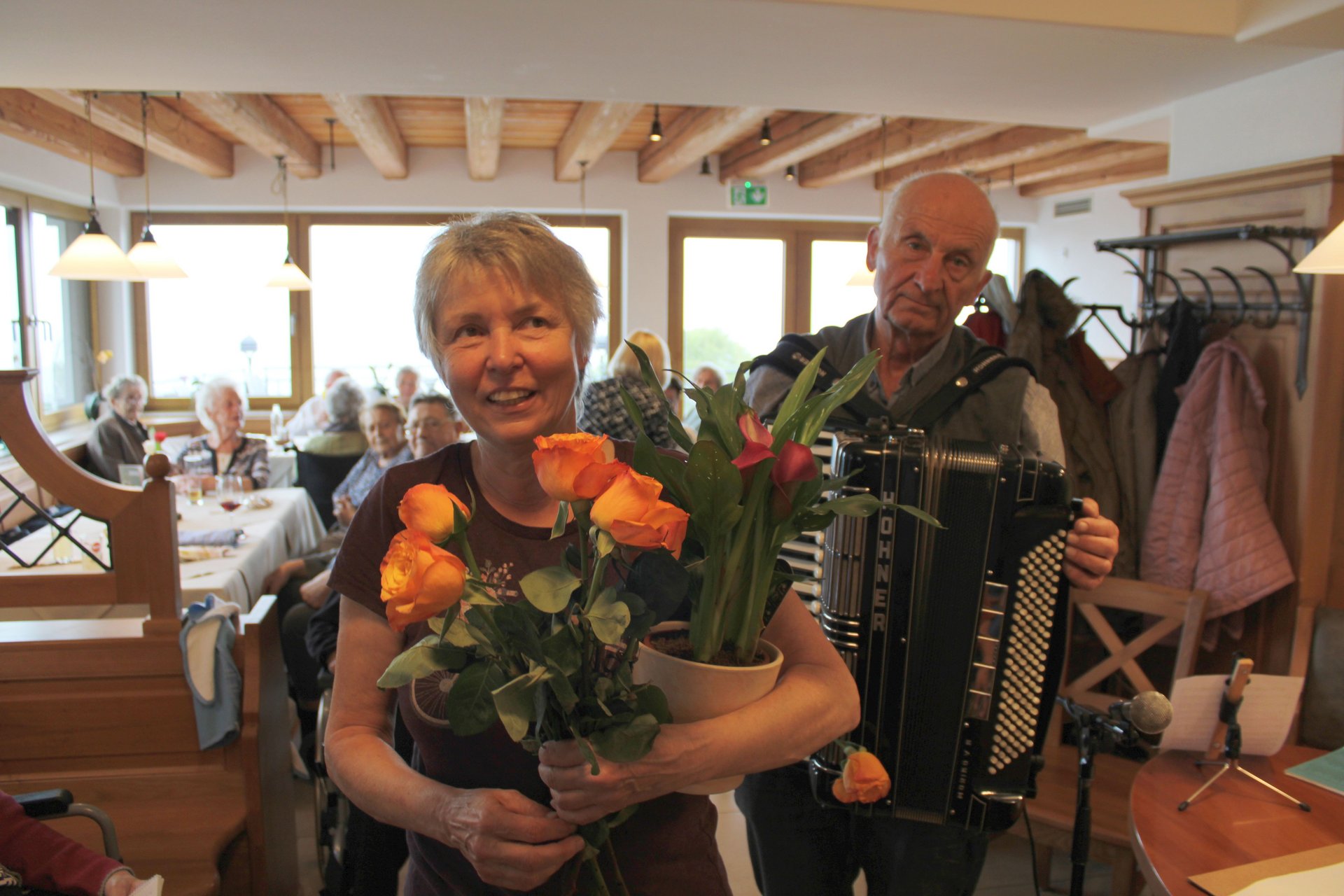 Der Ausflug stand auch im Zeichen eines Abschiedes: Mit einem lachenden und einem weinenden Auge hat Monika Pöllinger, Managerin Pflege und Betreuung Wohnbereich 2, an ihrem letzten Ausflug ihrer aktiven Berufstätigkeit teilgenommen. Mit einem selbst komponierten Lied des Ehrenamtsteams und einem Strauß Rosen wurde sie von ihren Schützlingen und Kolleginnen und Kollegen in den baldigen Ruhestand verabschiedet.