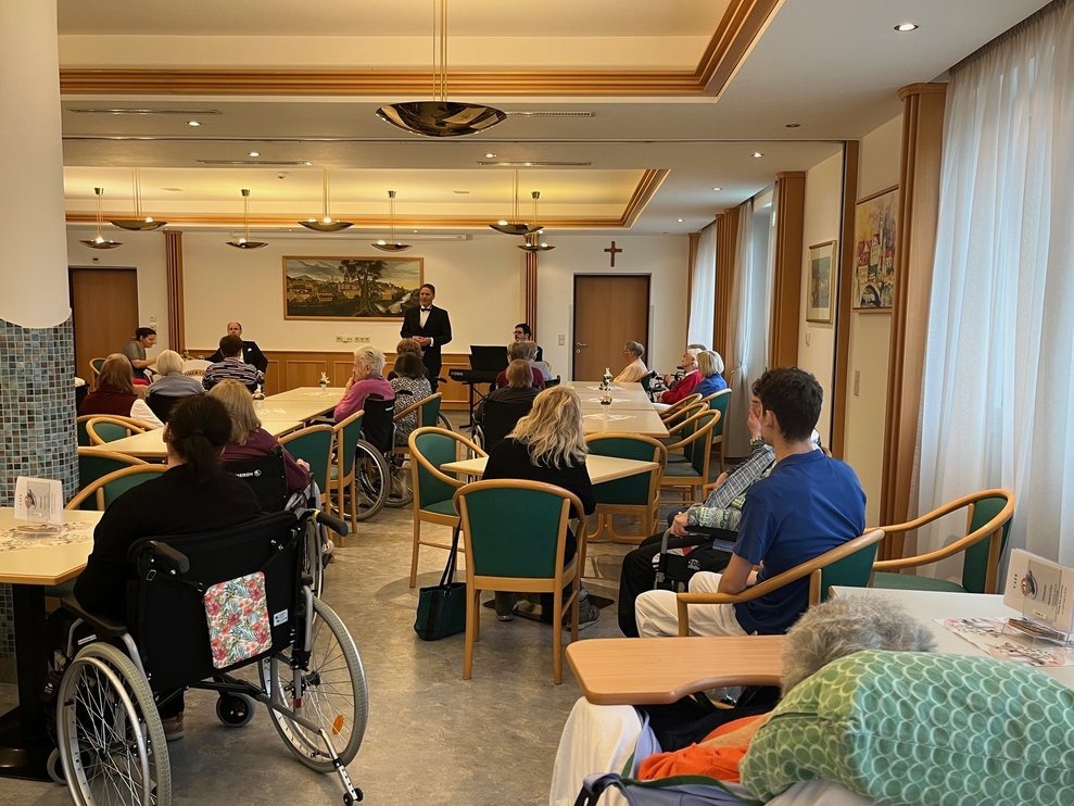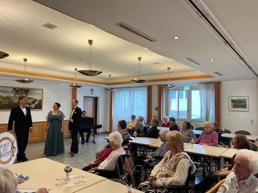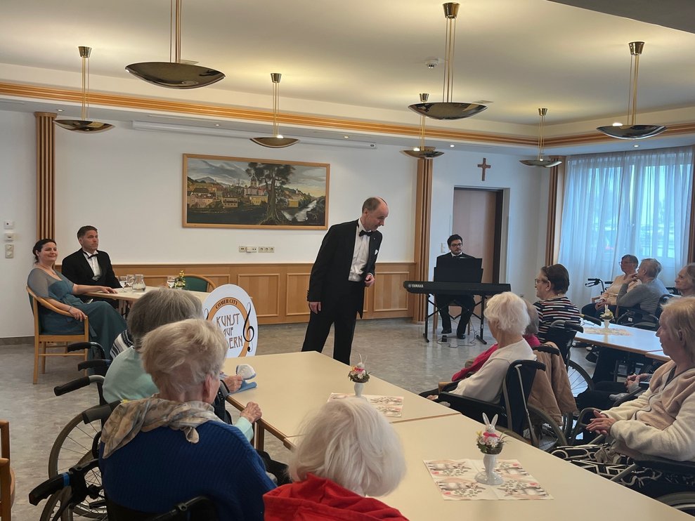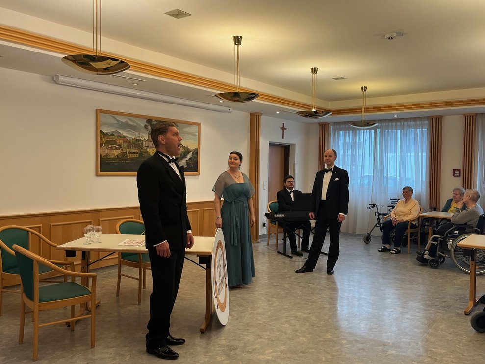 Das Ensemble "Kunst auf Rädern" besuchte auch heuer wieder das PBZ Waidhofen/Ybbs und erfreute die Bewohnerinnen und Bewohner mit dem Programm "Ein Lied geht um die Welt". Musikalisch ging es nach Italien, aber auch traditionelle Wiener Lieder zum Mitsingen und Mitklatschen durften nicht fehlen.