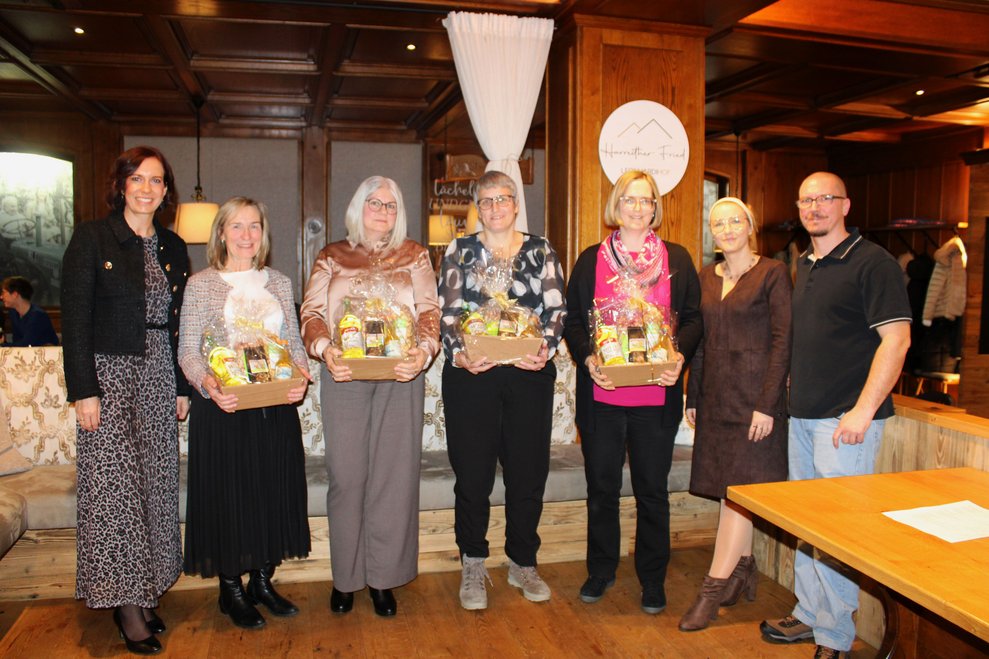 Im Rahmen der Weihnachtsfeier erhielten auch langjährige Mitarbeiterinnen zu ihren Dienstjubiläen eine Ehrung, zwei Kolleginnen wurden in den wohlverdienten Ruhestand verabschiedet.