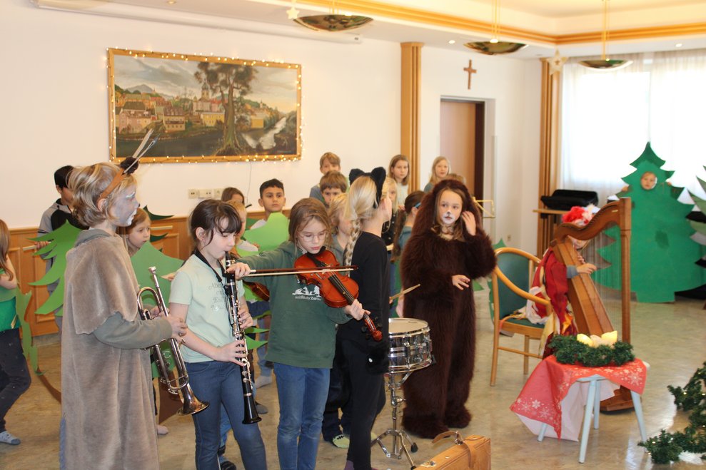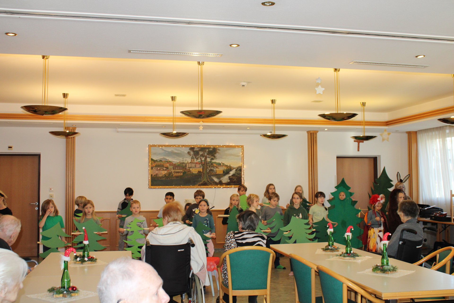 Bereits das zweite Mal in diesem Jahr besuchte die Familienklasse der Volksschule Waidhofen/Ybbs das PBZ Waidhofen/Ybbs und begeisterte die Bewohnerinnen und Bewohner mit einer Musicalvorführung. Passend zur Jahreszeit präsentierten die Schülerinnen und Schüler das Stück “Die Bremer Stadtmusikanten” in einer weihnachtlichen Version. Die Kinder überzeugten nicht nur mit ihrem Gesang und der Choreografie, sondern auch mit den auf ihren Musikinstrumenten vorgespielten Weihnachtsliedern.