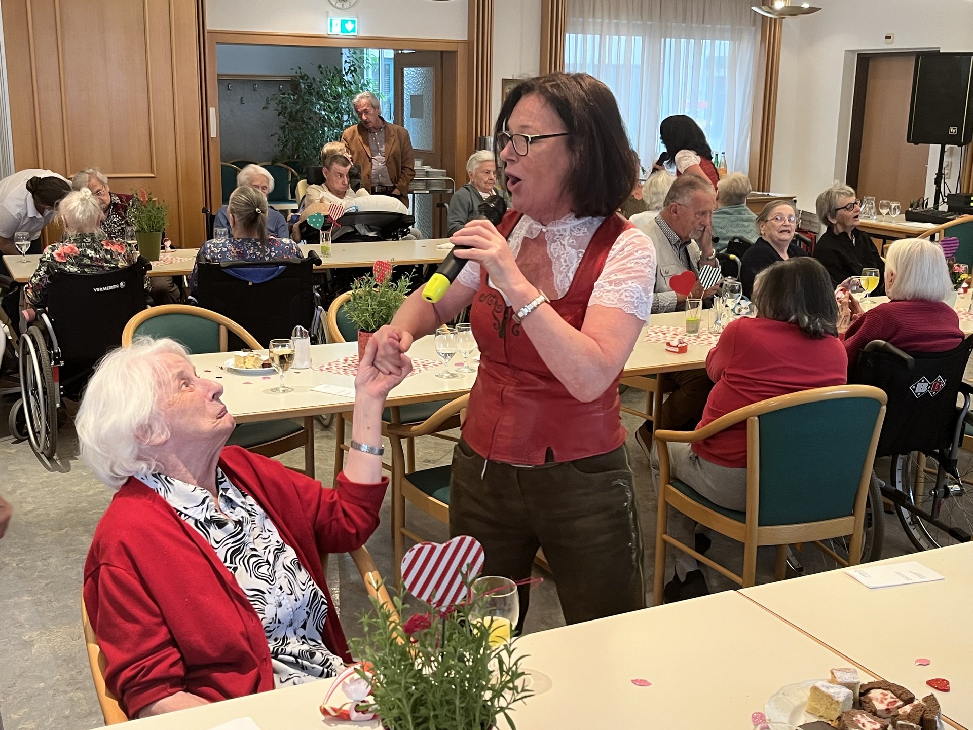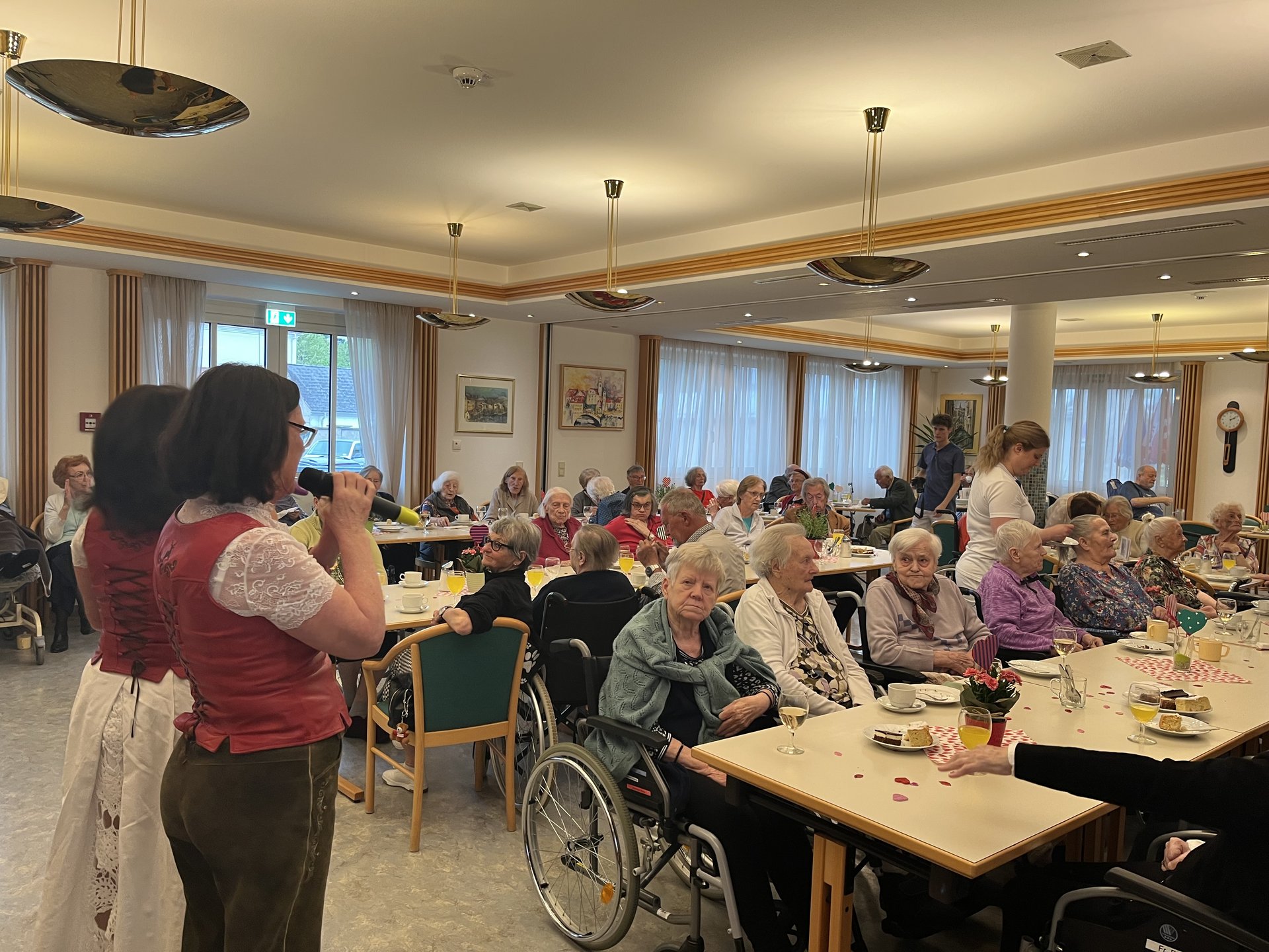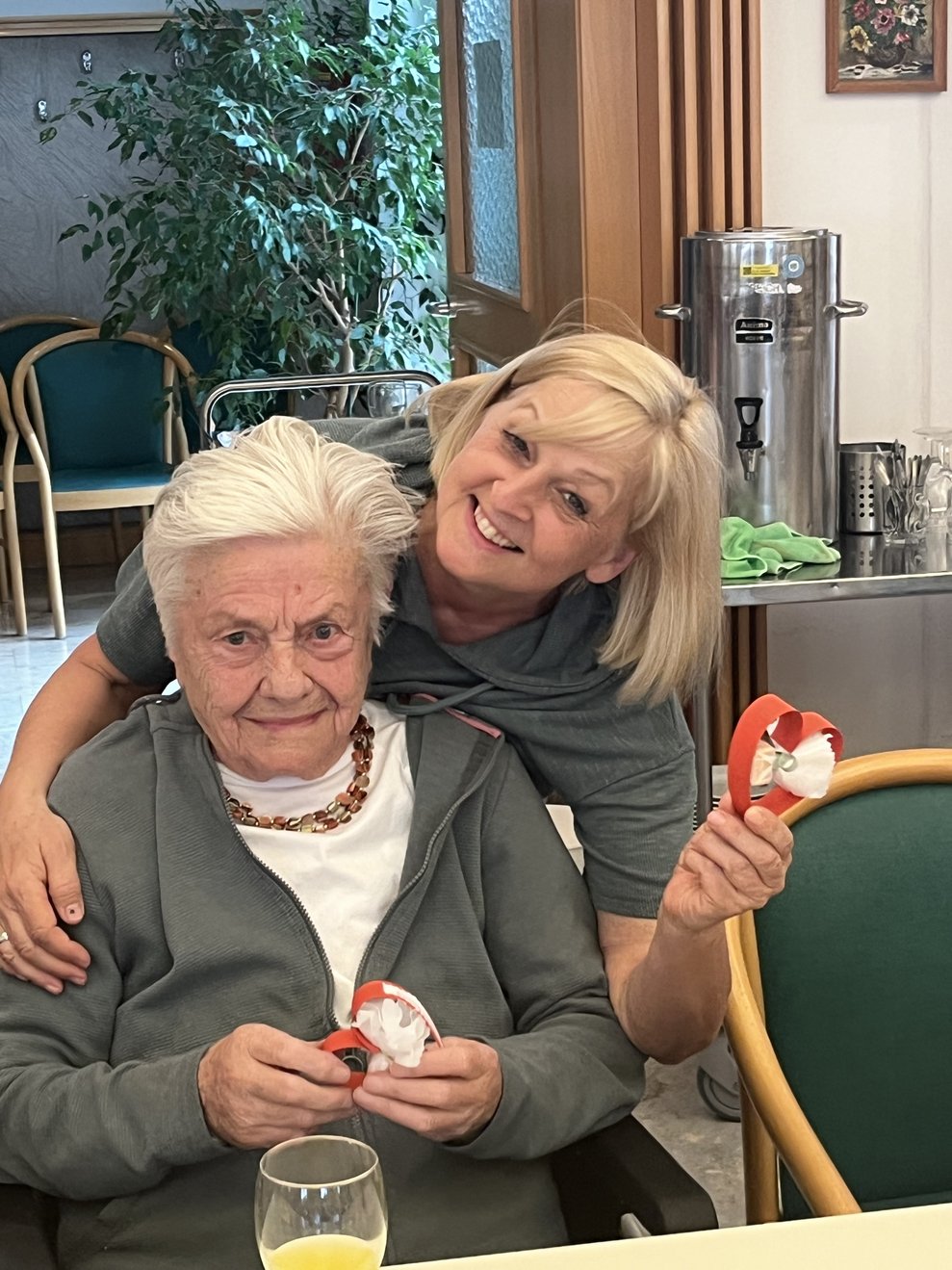 Zahlreiche Bewohnerinnen und Bewohner, Angehörige sowie Mitarbeiterinnen und Mitarbeiter haben sich zur Muttertagsfeier im PBZ Waidhofen/Ybbs eingefunden. Bei Kaffee, Kuchen und stimmungsvoller Musik durch die "Haubenberger Dirndln" Lisa & Maria wurde gefeiert und mitgesungen. Ein herziges Präsent, welches liebevoll von den Mitarbeiterinnen des Ehrenamtsteams gebastelt wurde, durfte zum Anlass für alle Mütter und auch Väter nicht fehlen.