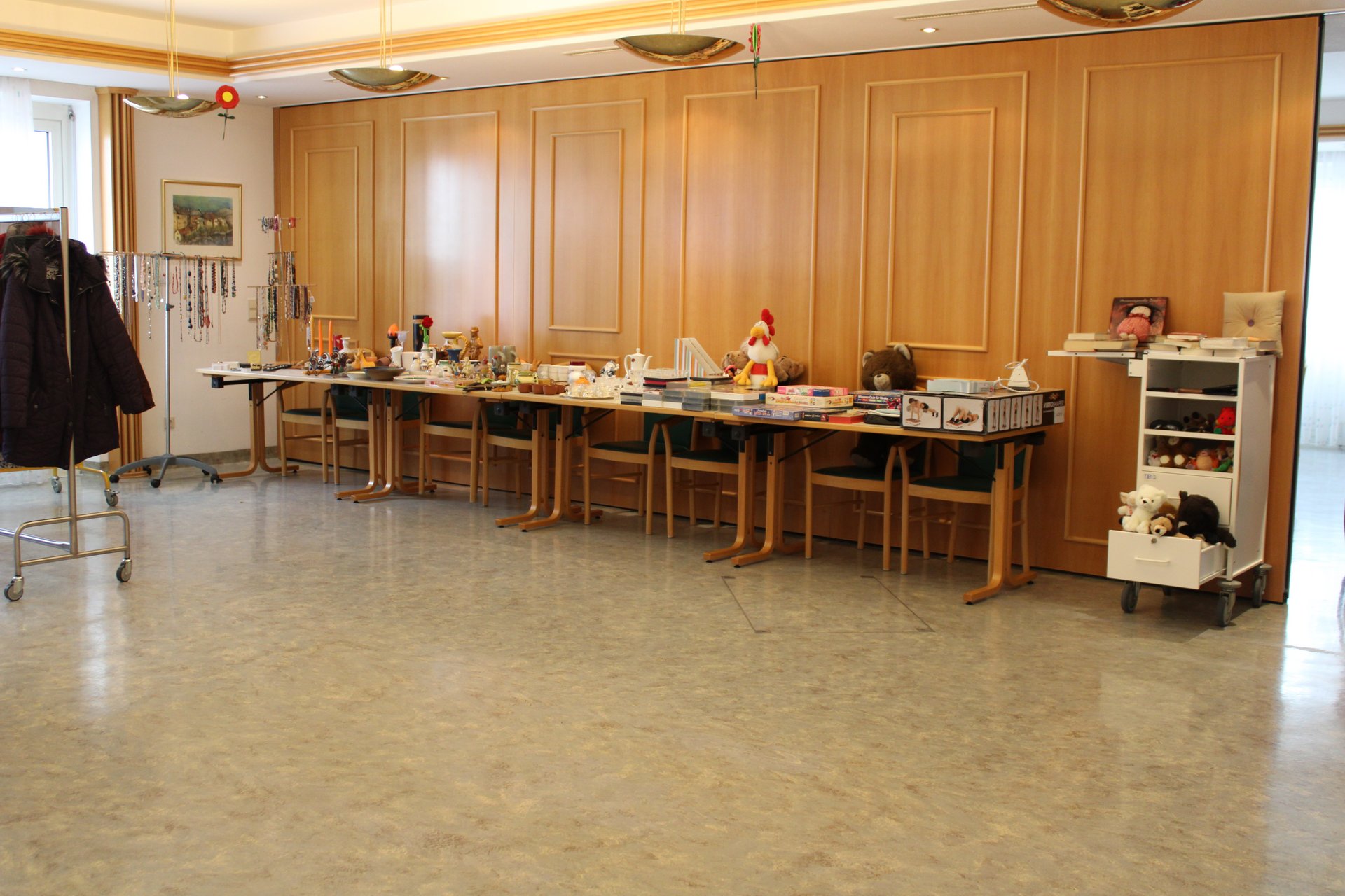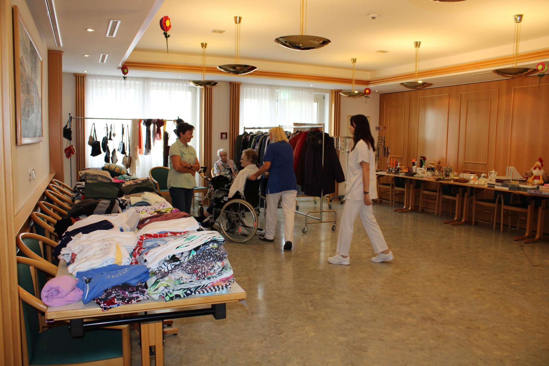 Für die Bewohnerinnen und Bewohner sowie deren Angehörige wird vom Team Ehrenamt und Alltagsbegleitung jährlich ein Flohmarkt im PBZ Waidhofen/Ybbs organisiert. Das Angebot reichte heuer wieder von Kleidung über Schmuck, über selbstgehäkelte Taschen für die Rollstühle und Geschirr bis hin zu Spielzeug für die jüngsten Besucherinnen und Besucher.