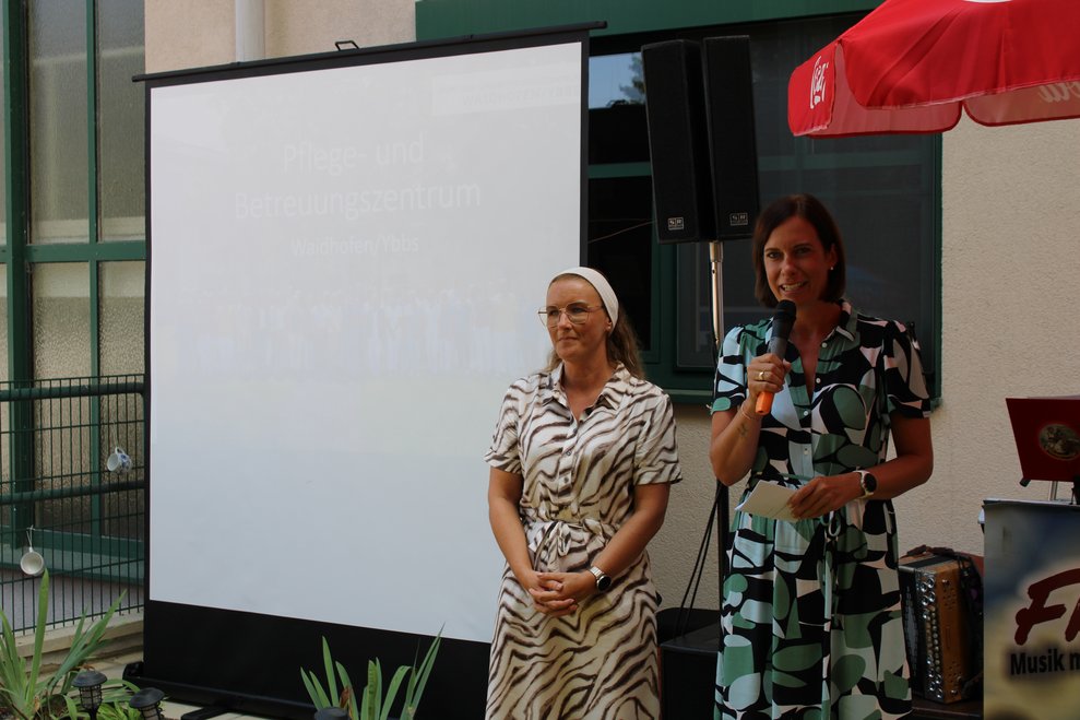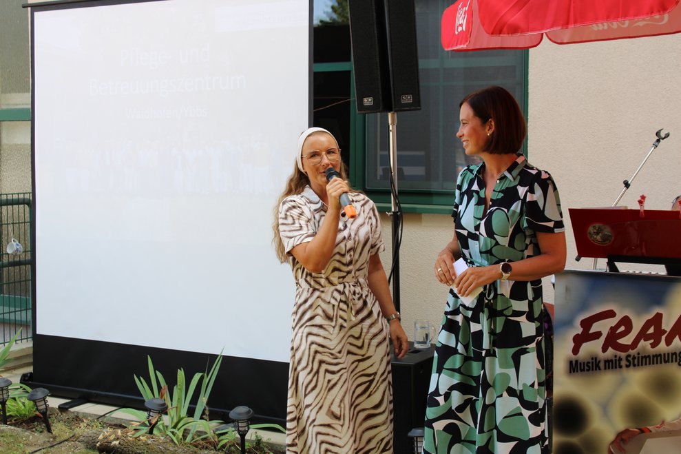 Die kaufmännische Direktorin und die Pflegedirektorin eröffneten gemeinsam das Fest. Unter anderem besuchten uns Geschäftsführer und ehemaliger kfm. Direktor Mag. Martin Kaiser sowie Bürgermeister Mag. Werner Krammer und Kaplan Samuel Igwe, die bei einem lustigen Spiel nicht ganz freiwillig, aber mit viel Humor und Einsatzfreude, gemeinsam mit den Direktorinnen und weiteren Auserwählten auf die Bühne traten – der Applaus war allen Teilnehmerinnen und Teilnehmern sicher.