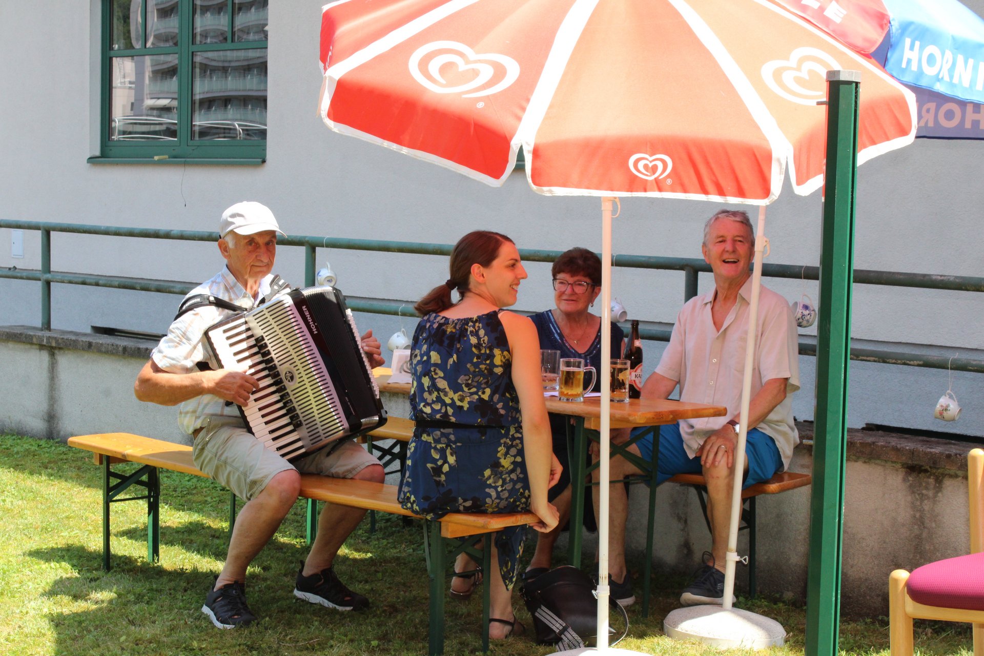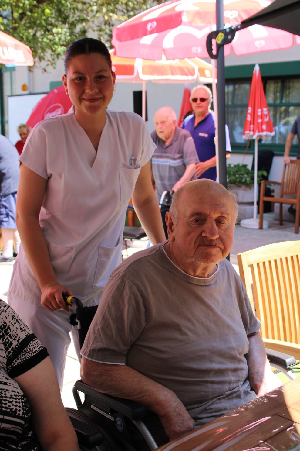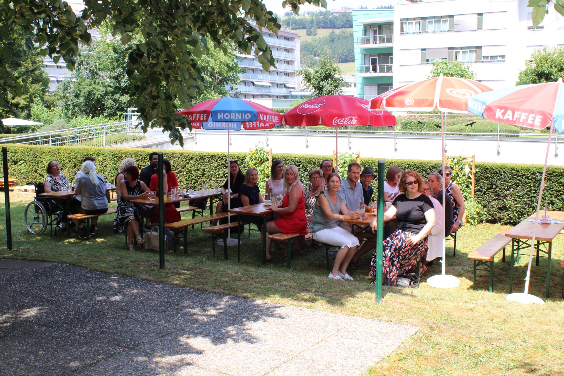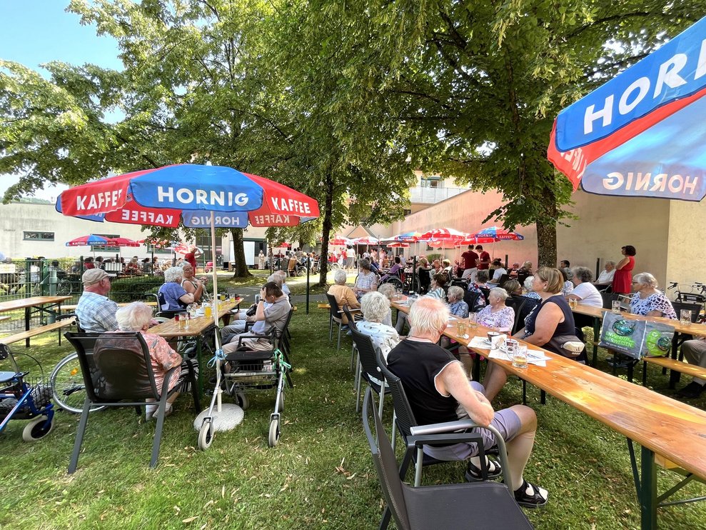 Bei sonnigem Wetter, kühlen Getränken, Kuchen und frischem Gegrilltem kamen Bewohnerinnen und Bewohner, Angehörige und Gäste zusammen. Der Besuch aus dem PBZ Mank wurde herzlich empfangen und trug spürbar zur fröhlichen Stimmung bei.