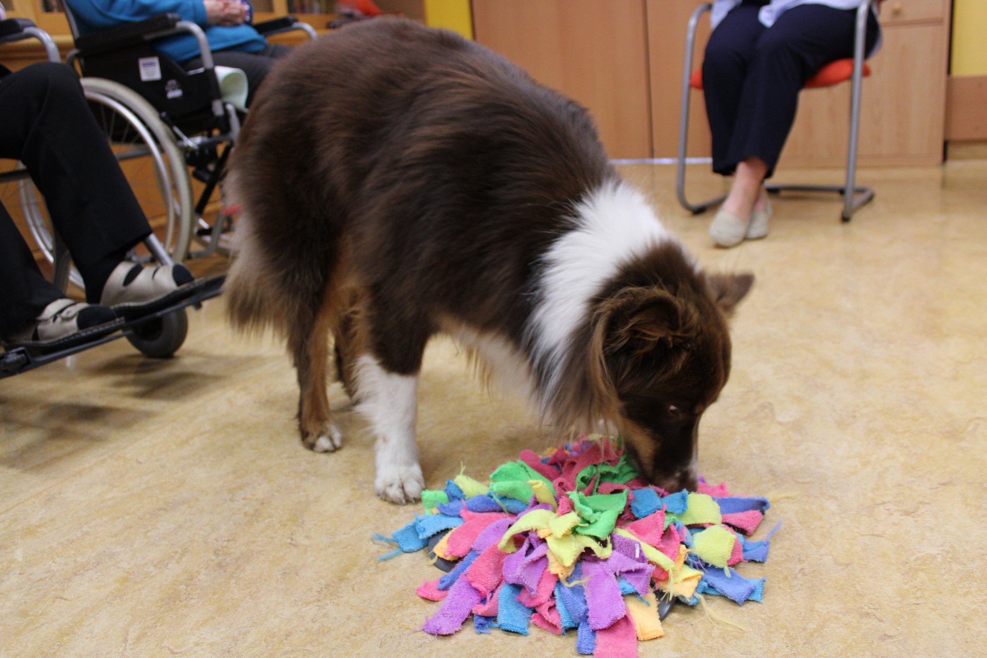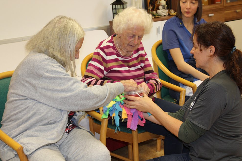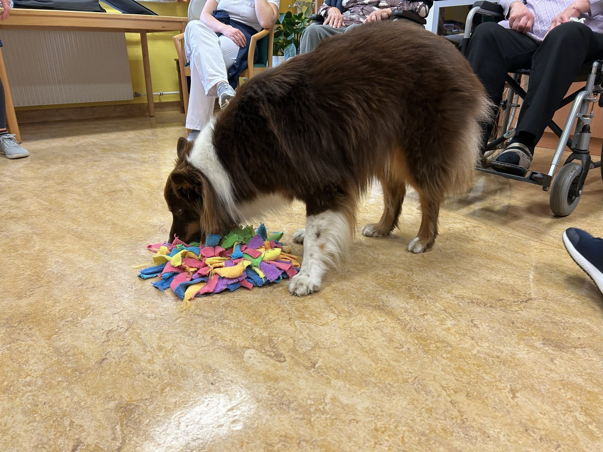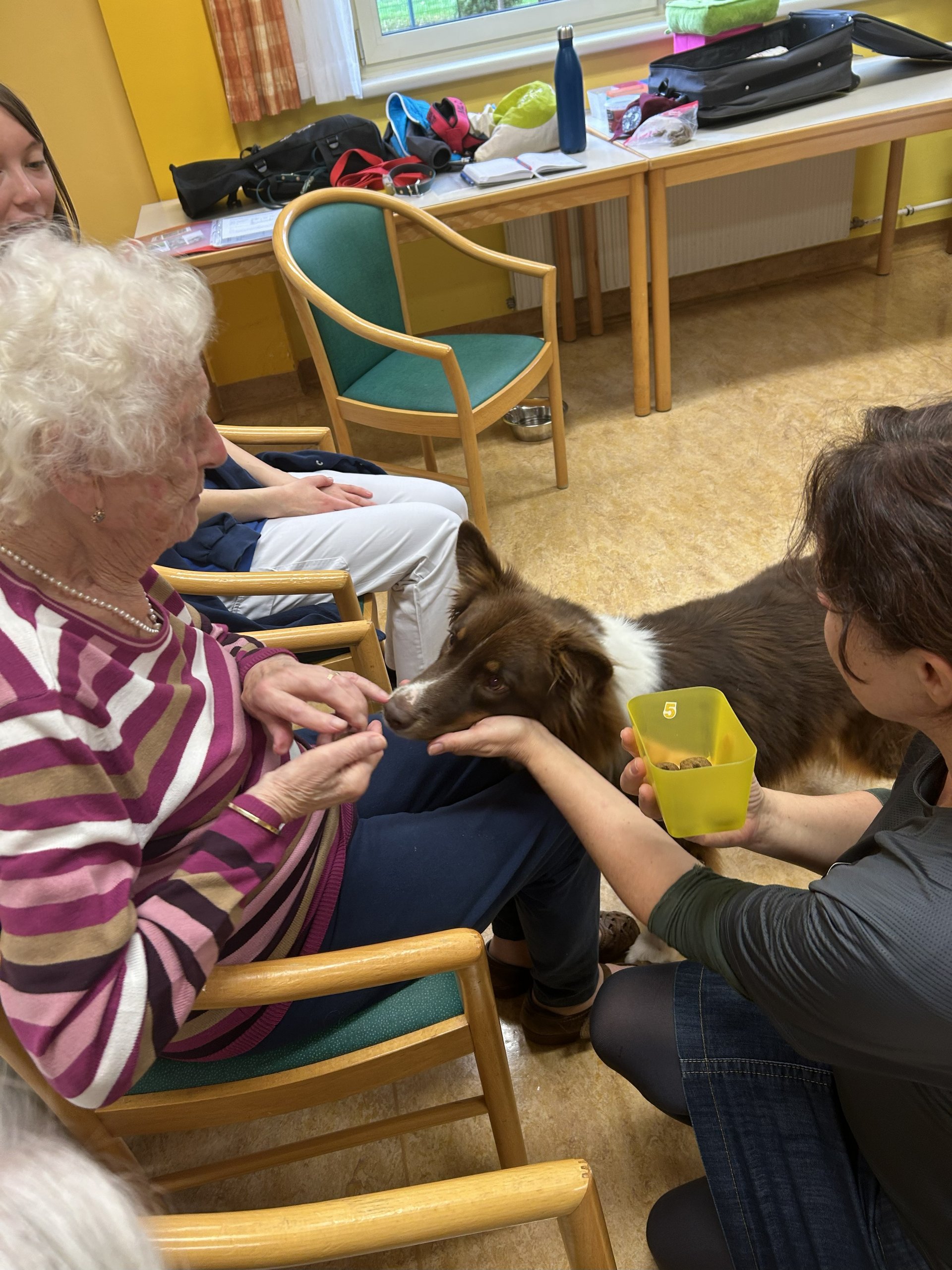 Die erste tiergestützte Therapie mit Therapiehund Milo sorgte für strahlende Gesichter bei unseren Bewohnerinnen und Bewohnern. Im Rahmen des Sommerfests wurde Milo und seine Begleiterin bereits vorgestellt. Umso größer war nun die Freude über den Besuch, bei dem Milo unseren Bewohnerinnen und Bewohnern mit seiner ruhigen und freundlichen Art schöne Momente bescherte.