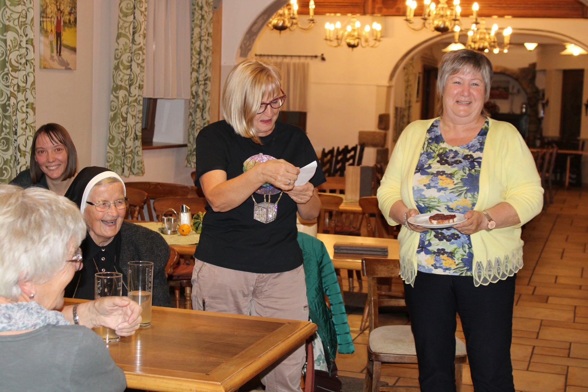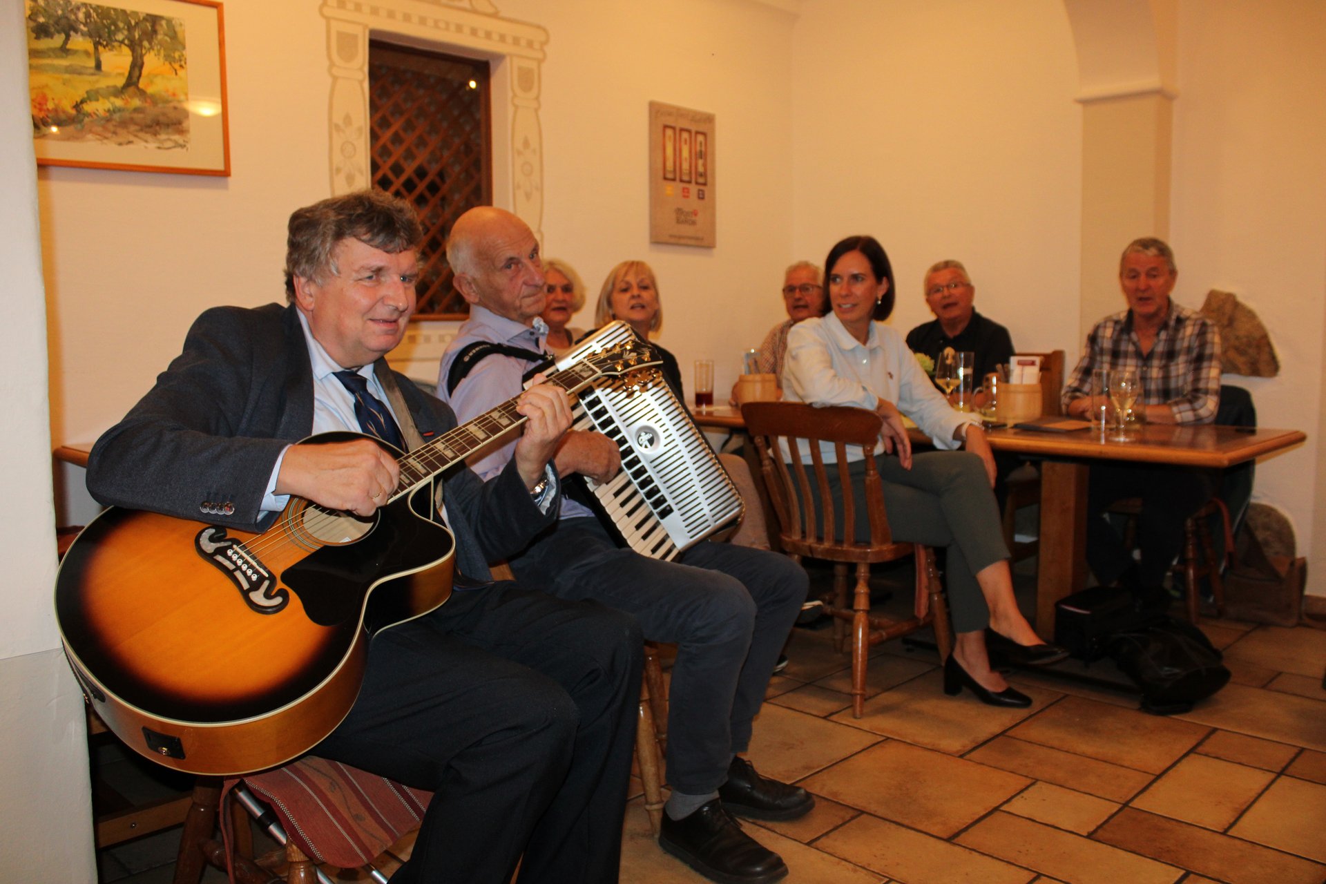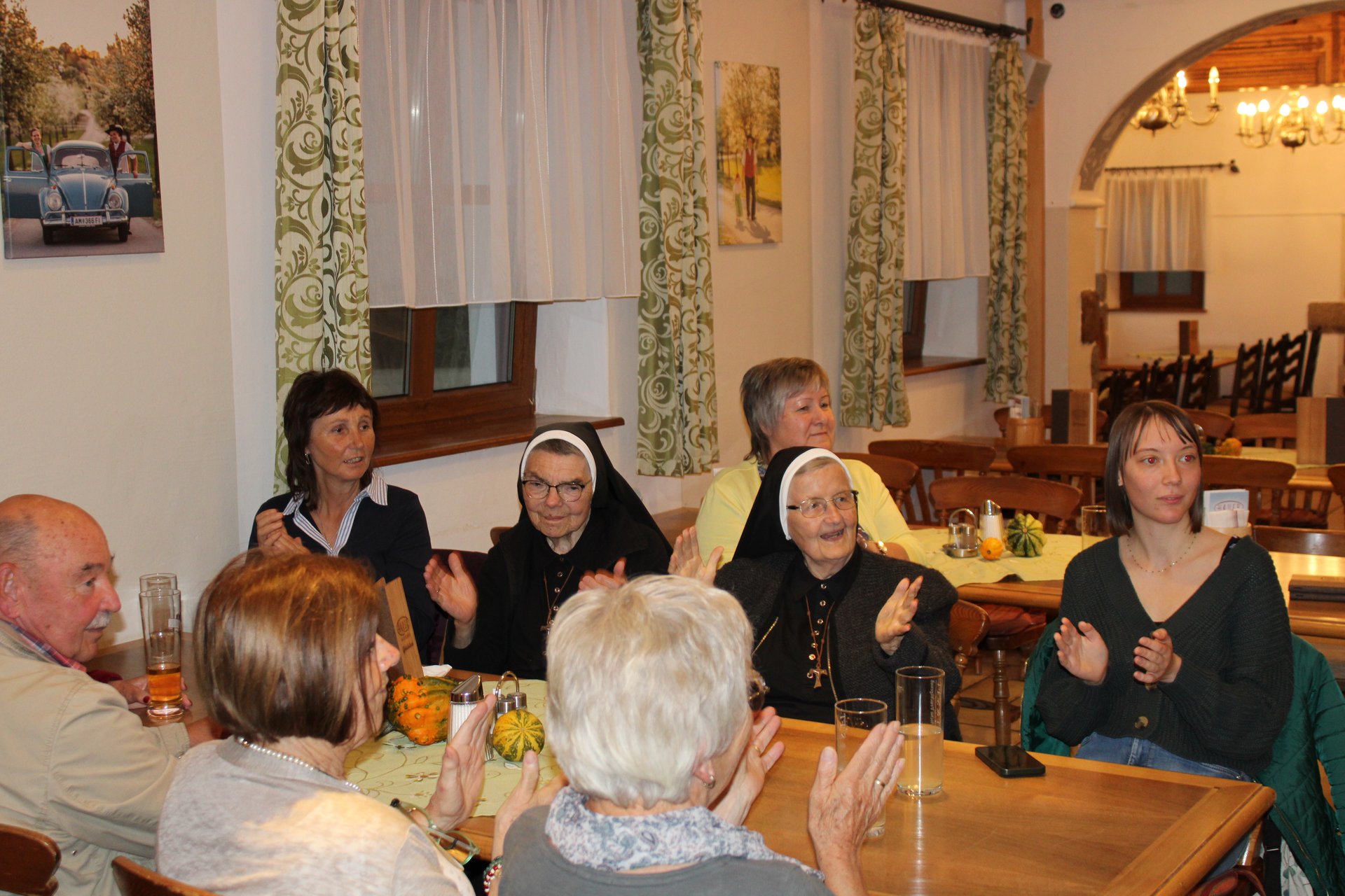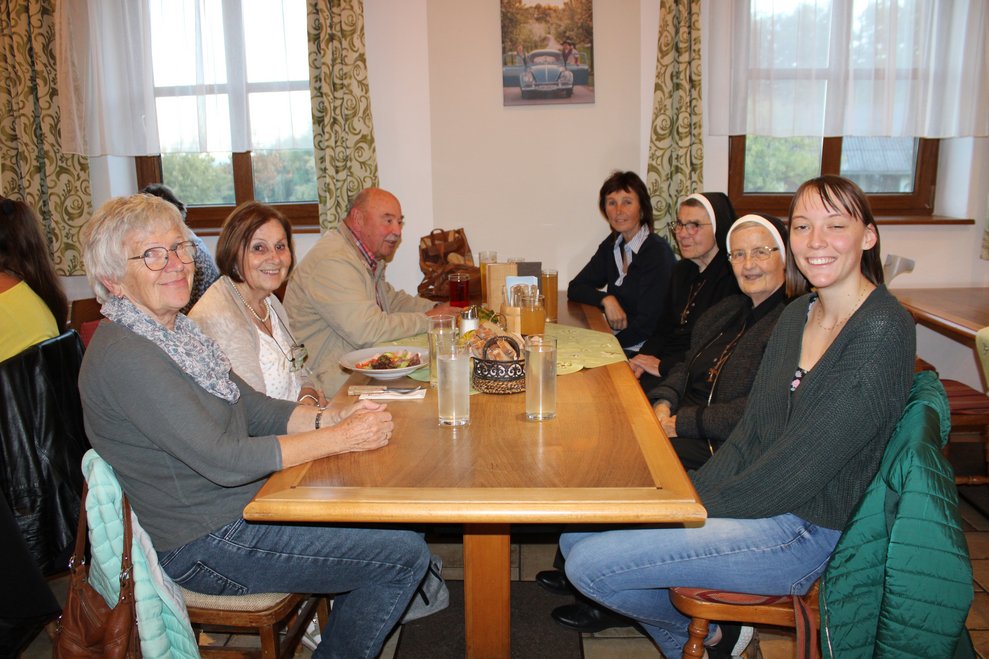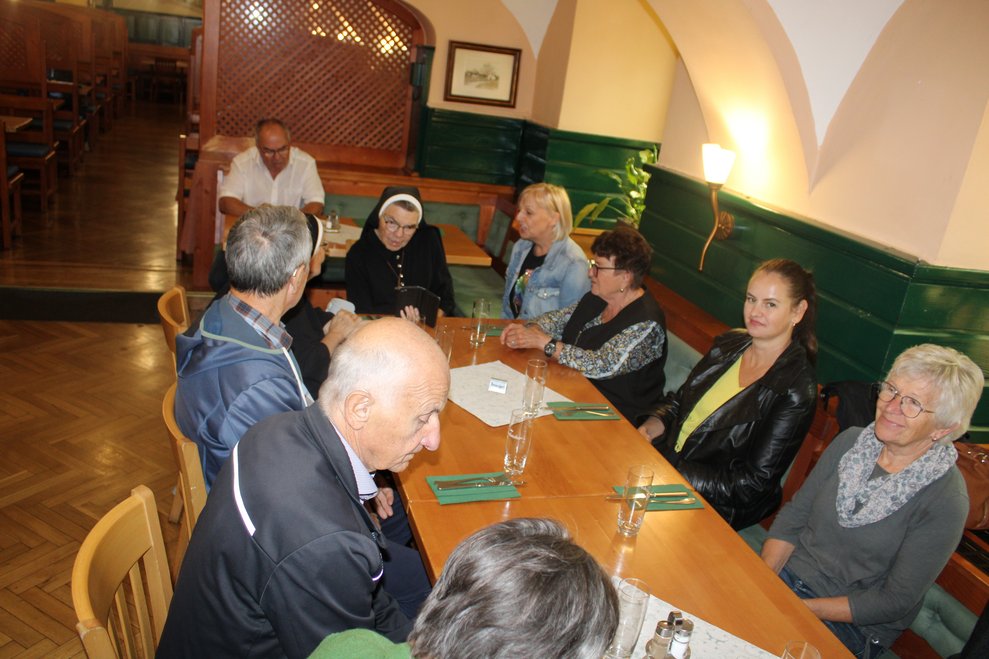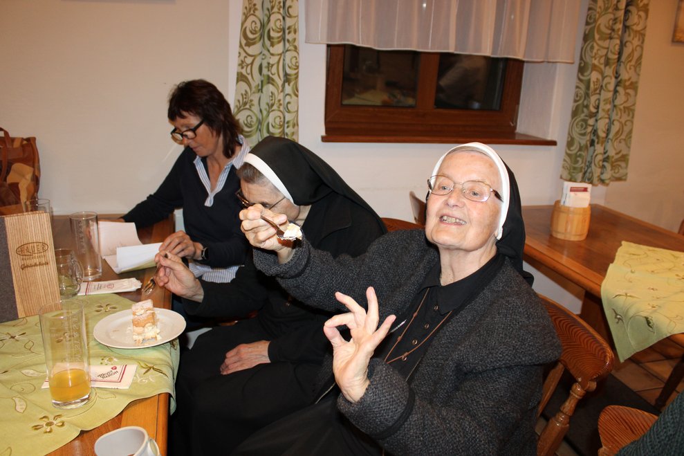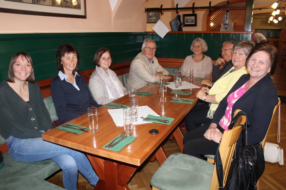 Der gemütliche Abschluss des aufregenden Ausflugstages fand beim heimischen Heurigen statt, wo auch unsere kaufmännische Direktorin Jacqueline Kreismayr gekommen ist. Dort wurde nicht nur gemeinsam musiziert und gesungen, sondern auch einem ehrenamtlichen Mitarbeiter und dessen Frau zur an diesem Tag stattgefundenen Hochzeit gratuliert.