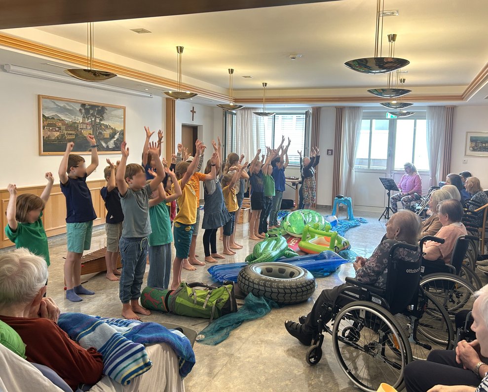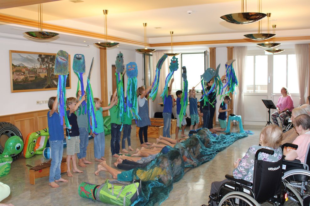 Die Schülerinnen und Schüler der Volksschule Waidhofen/Ybbs präsentierten den Bewohnerinnen und Bewohnern des Pflege- und Betreuungszentrums ihr Musical "Hurra die Schule ist aus".