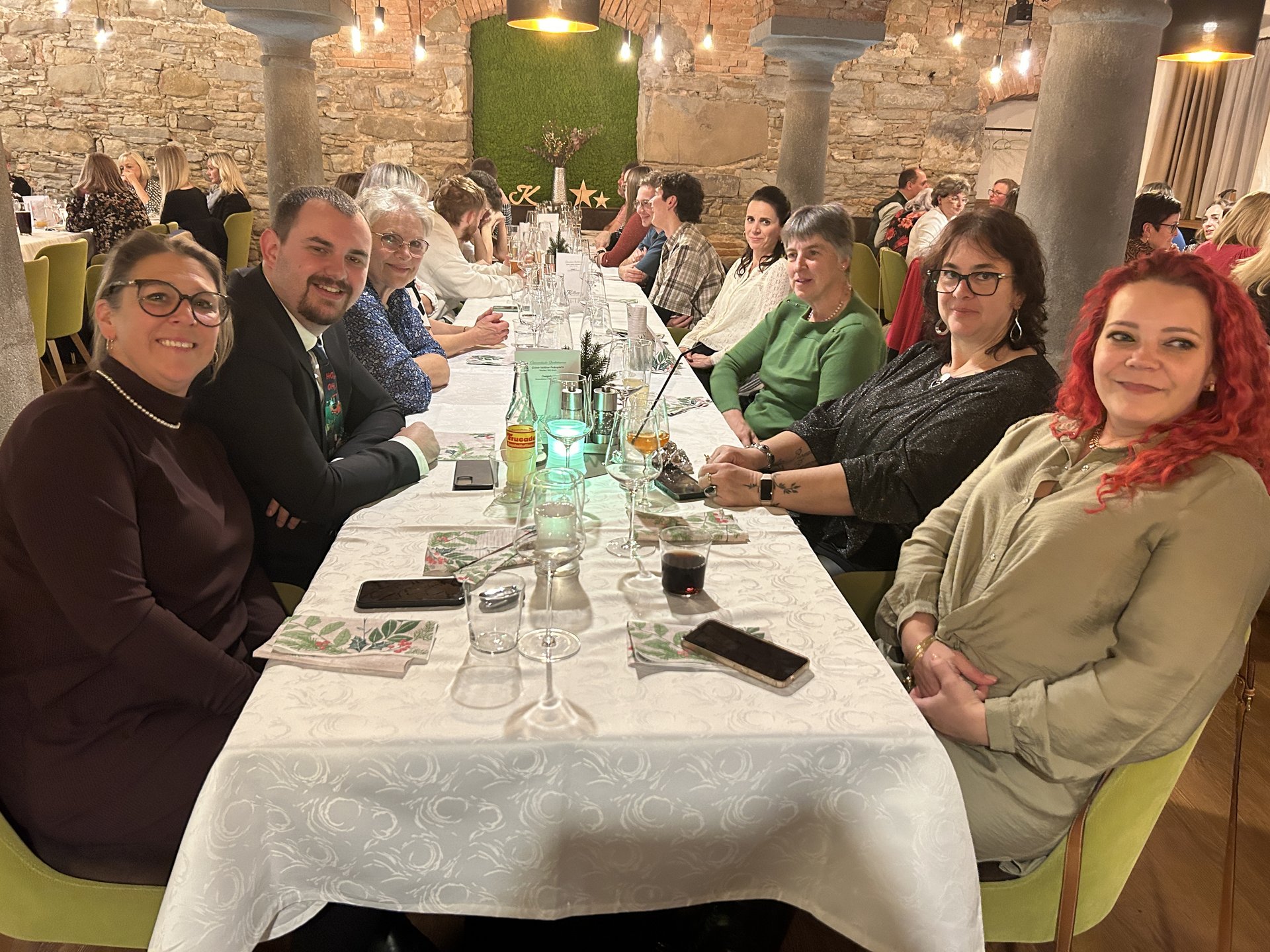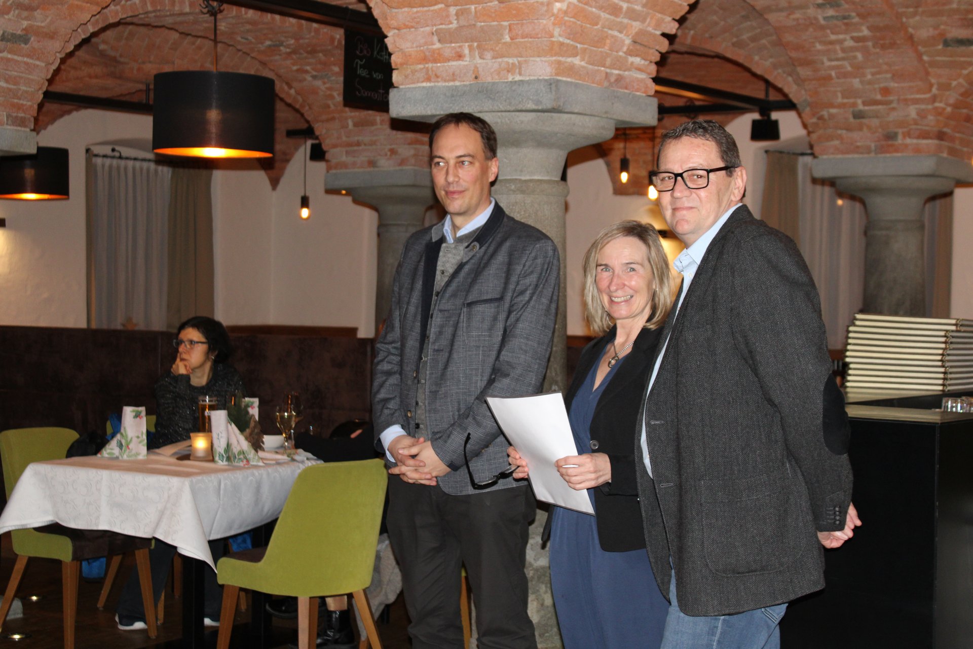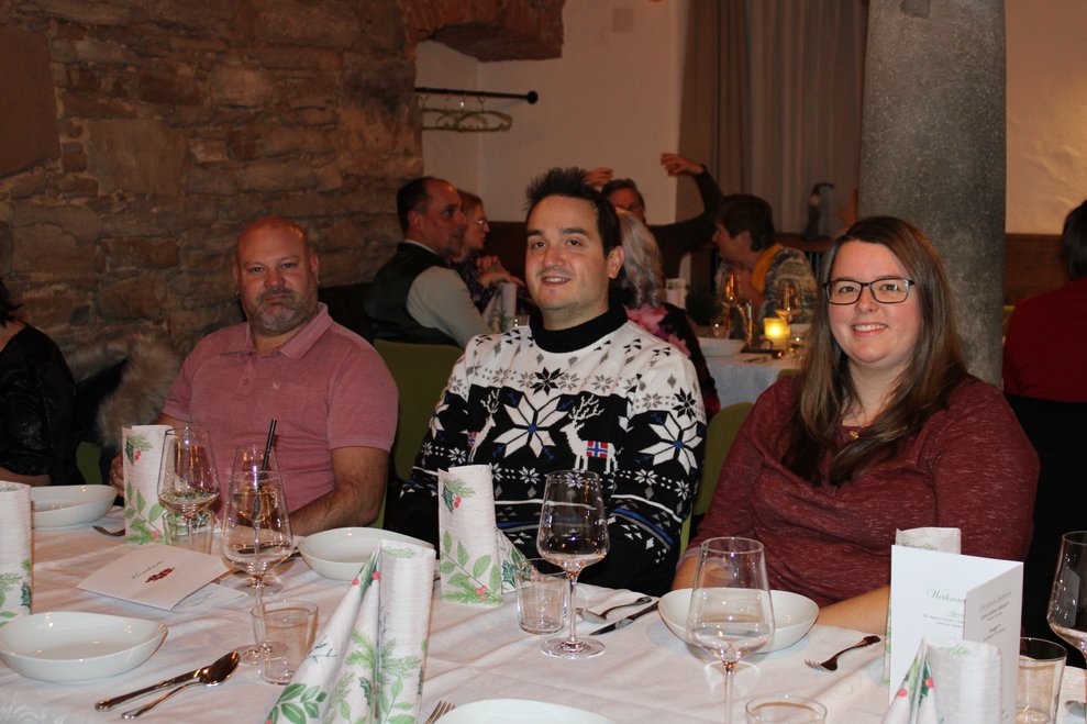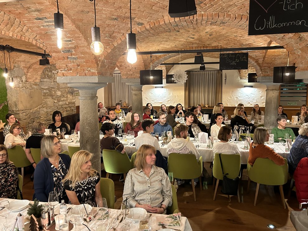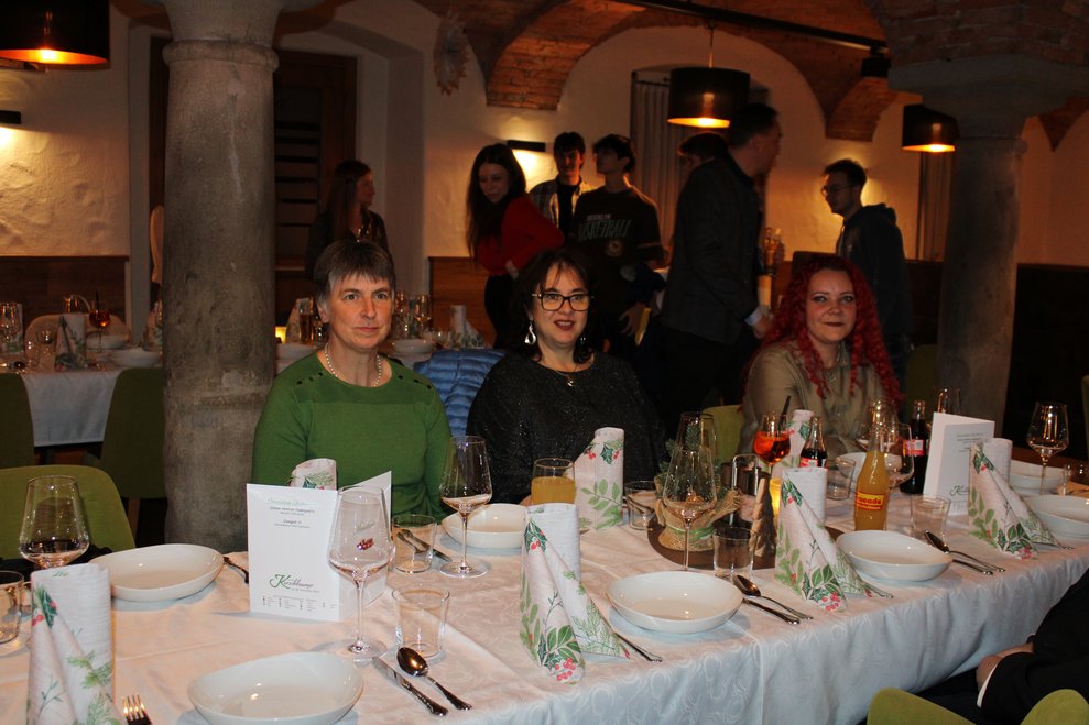 Im festlich geschmückten Gewölbesaal des Gasthaus Kerschbaumer begrüßten Martin Kaiser (kfm. Direktor), Stefanie Luger (interim. Pflegedirektorin) sowie Betriebsrat Gottfried Lettner die Mitarbeiterinnen und Mitarbeiter.