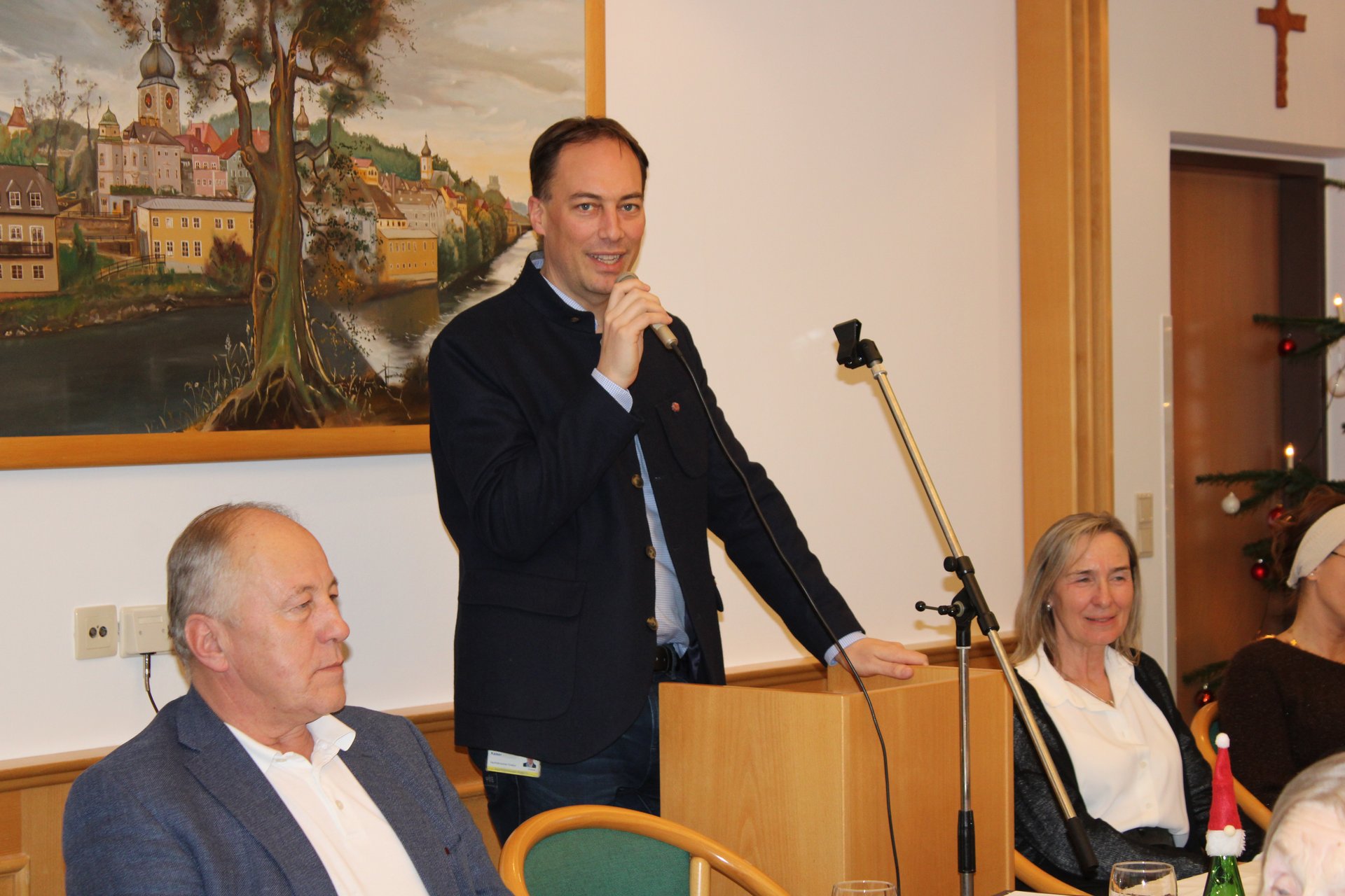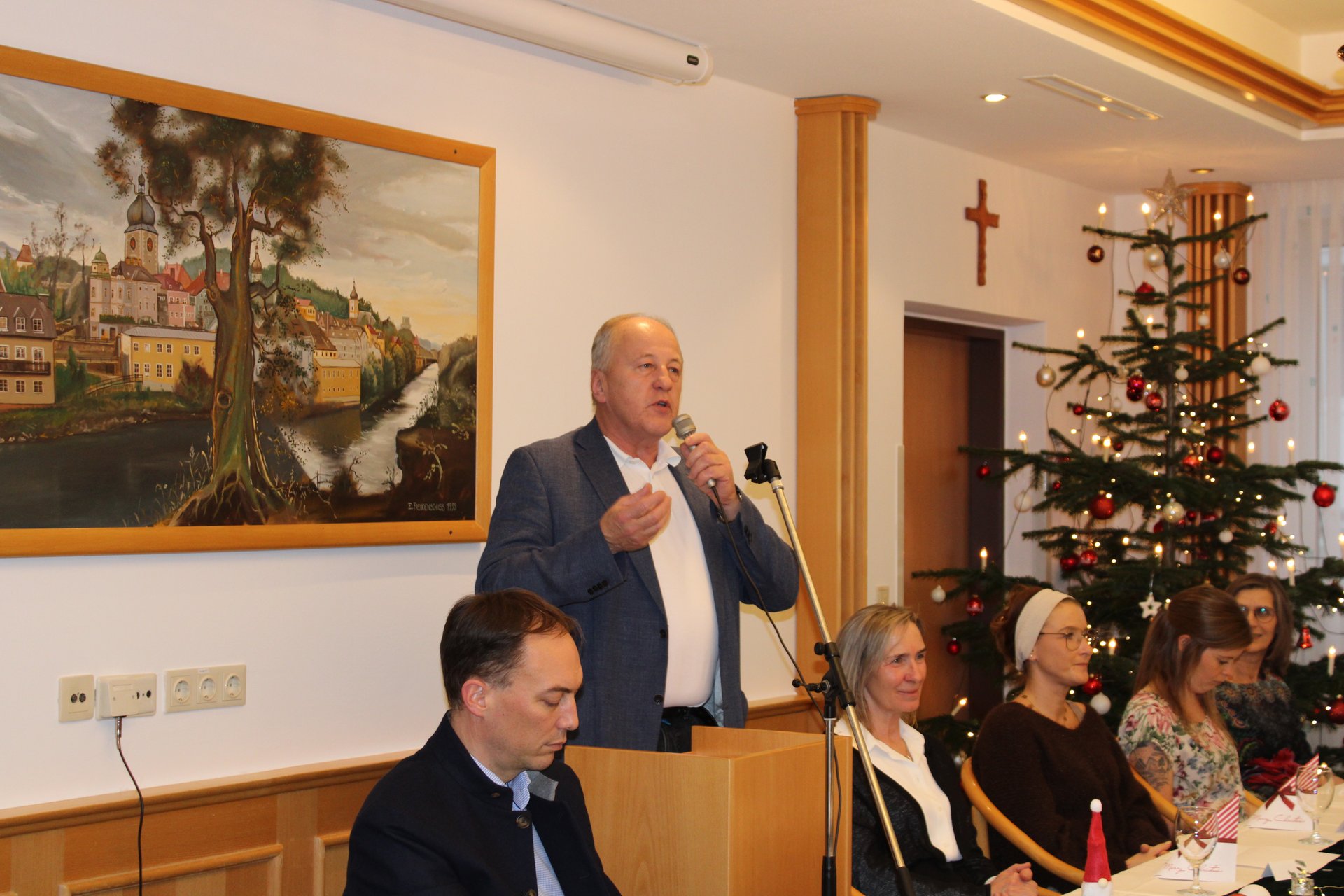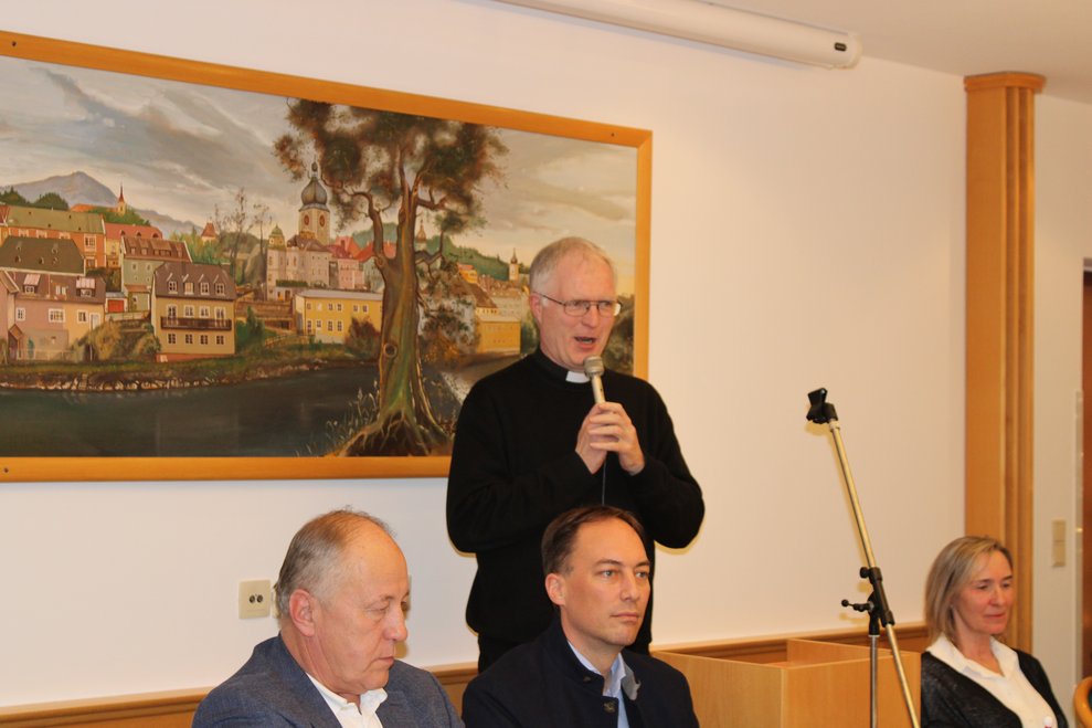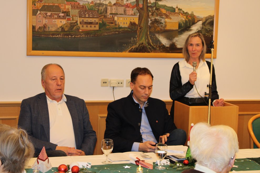 Stadtpfarrer Mag. Christian Poschenrieder hob in seiner Rede den Sinn des Weihnachtsfestes hervor. Stadtrat Franz Sommer (in Vertretung von Bürgermeister Werner Krammer) sprach über die Wichtigkeit von Gemeinschaft.