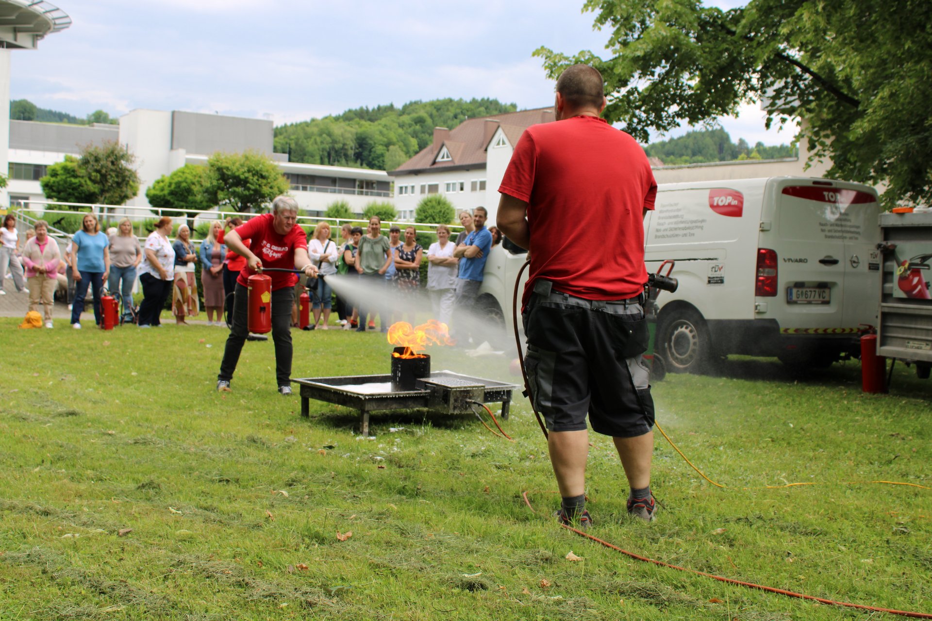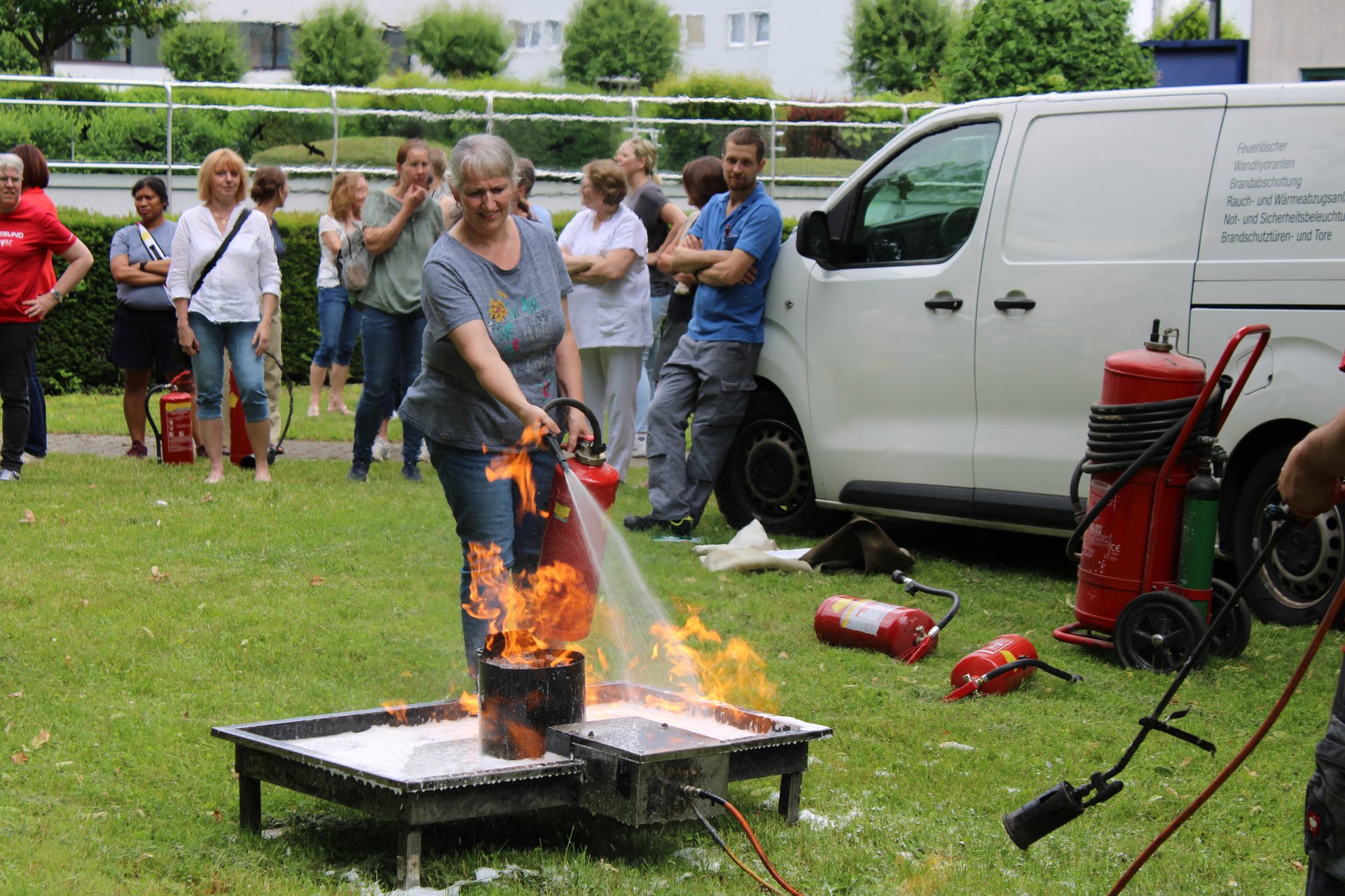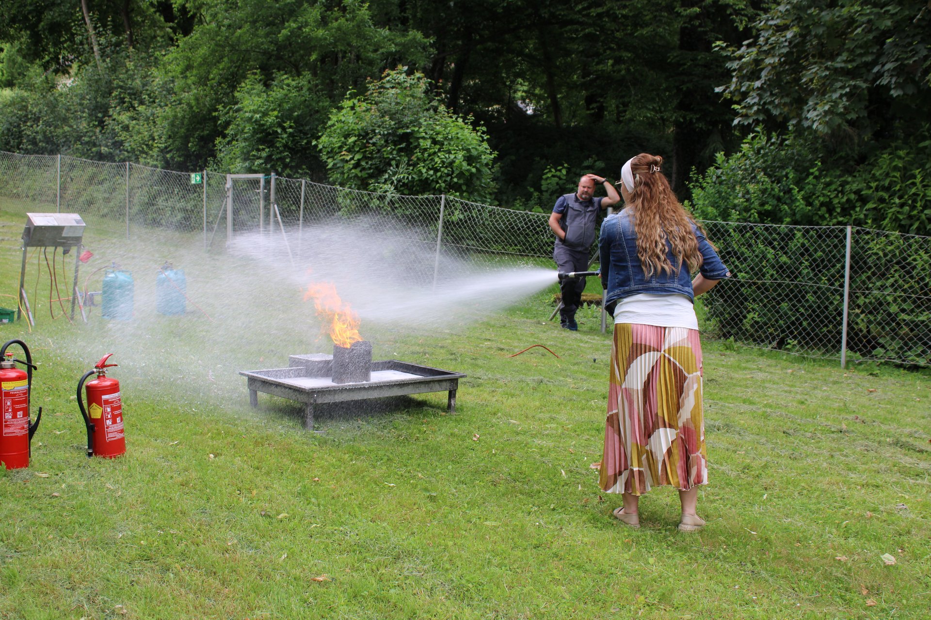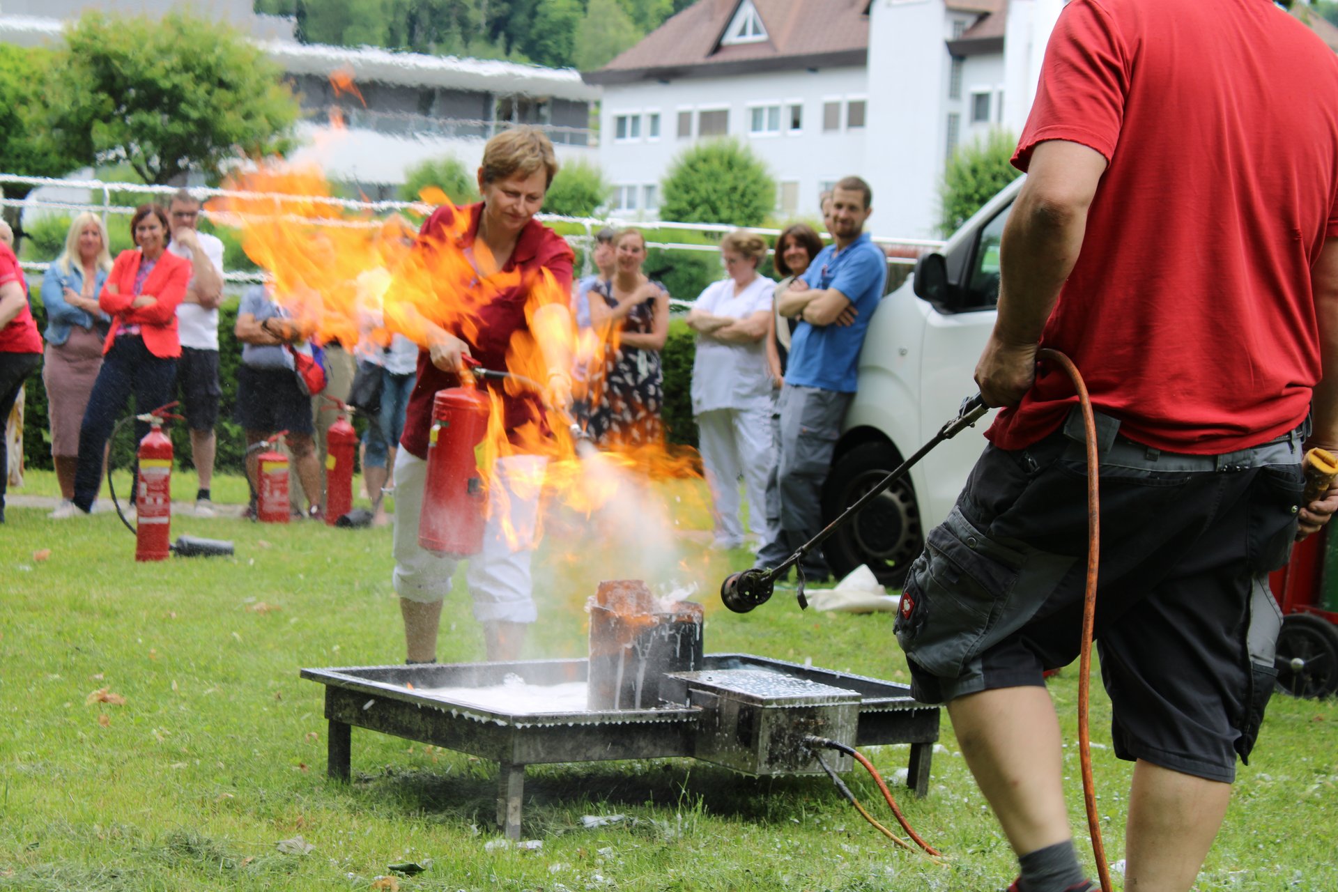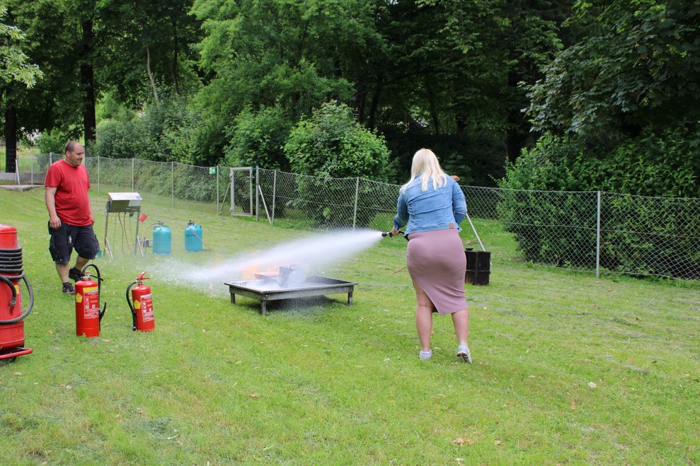 Neben der Selbstübung wird auch über die verschiedenen Arten von Feuerlöschern und ihre gezielten Einsatzmöglichkeiten informiert.